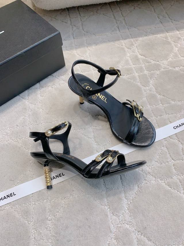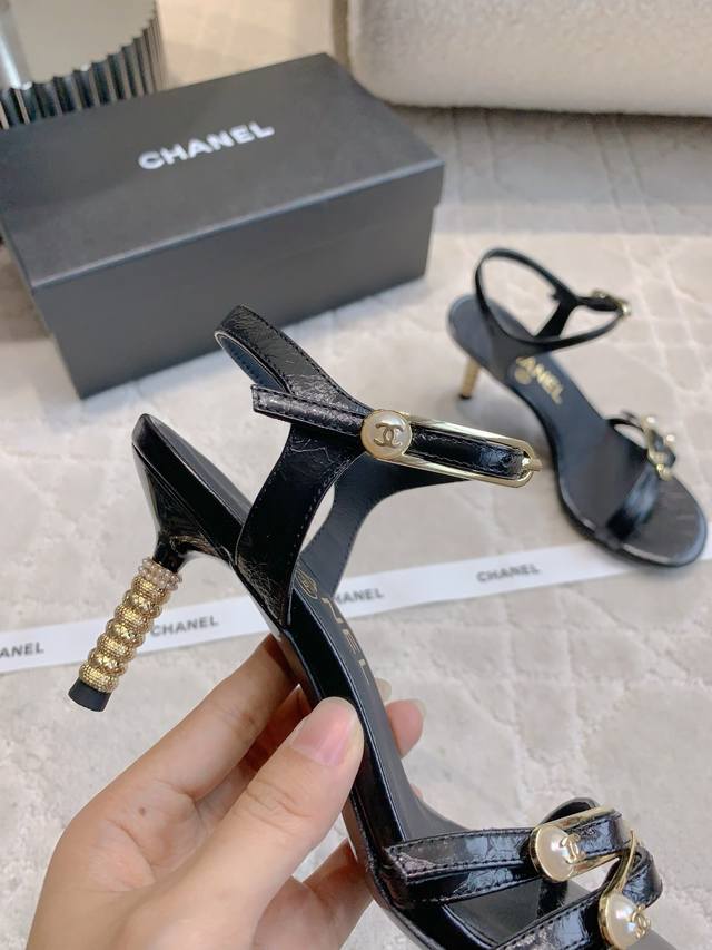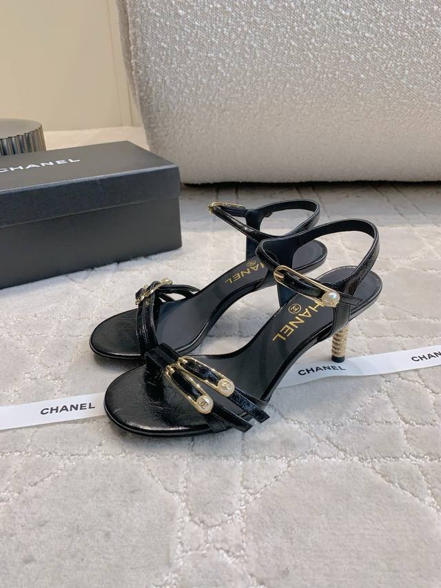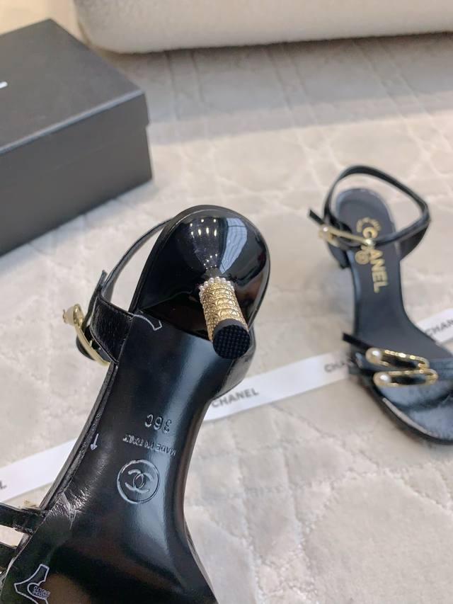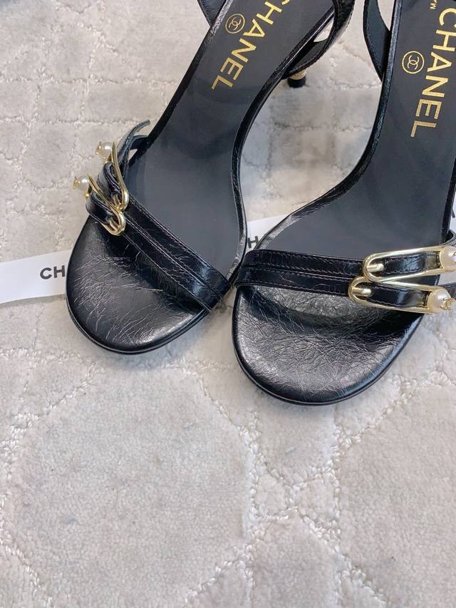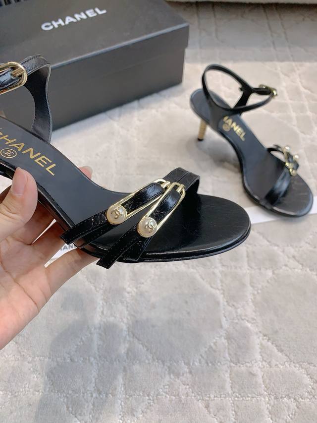 出厂价p Chane*新款别针高跟凉鞋 精致又秀气 上脚超赞 简约的高级感 鞋面小牛皮 原版开模五金 内里垫脚羊皮 意大利真皮大底 跟高7.5Cm 尺码35-3