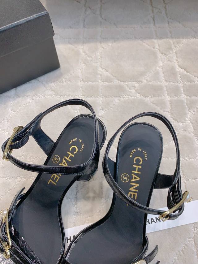 出厂价p DDD Chane*新款别针高跟凉鞋 精致又秀气 上脚超赞 简约的高级感 DDD 鞋面小牛皮 原版开模五金 内里垫脚羊皮 意大利真皮大底 跟高7.5Cm 尺码35-39 40定做 DDD