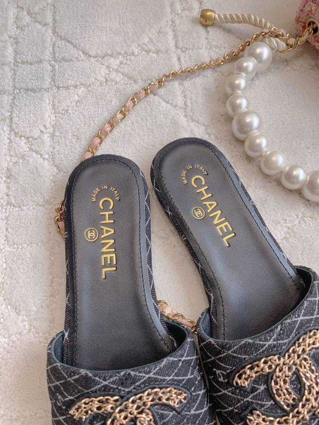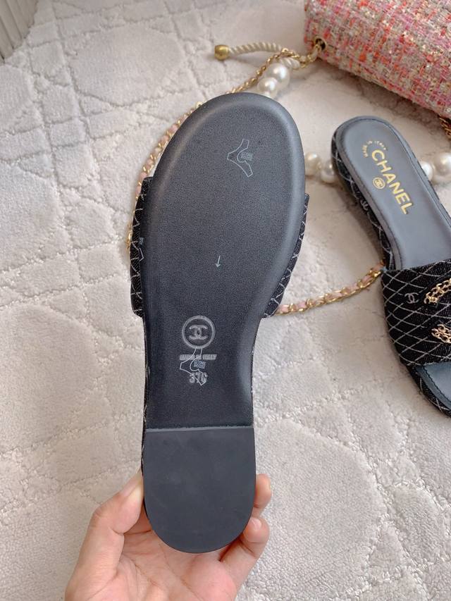 出厂价p Chane*新款平底拖鞋 经典度假风 双C Logo装饰简约清爽 百搭单品 鞋面小牛皮 牛仔布 内里垫脚羊皮 意大利真皮大底 尺码35-39 34 4