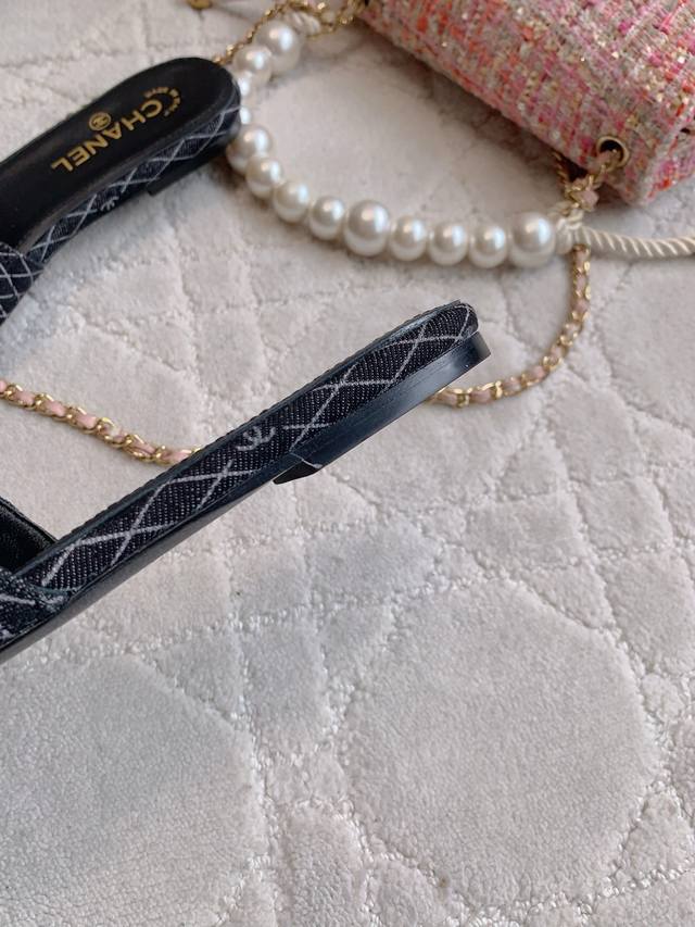 / 出厂价p Chane*新款平底拖鞋 经典度假风 双C Logo装饰简约清爽 百搭单品 鞋面小牛皮 牛仔布 内里垫脚羊皮 意大利真皮大底 尺码35-39 34 4