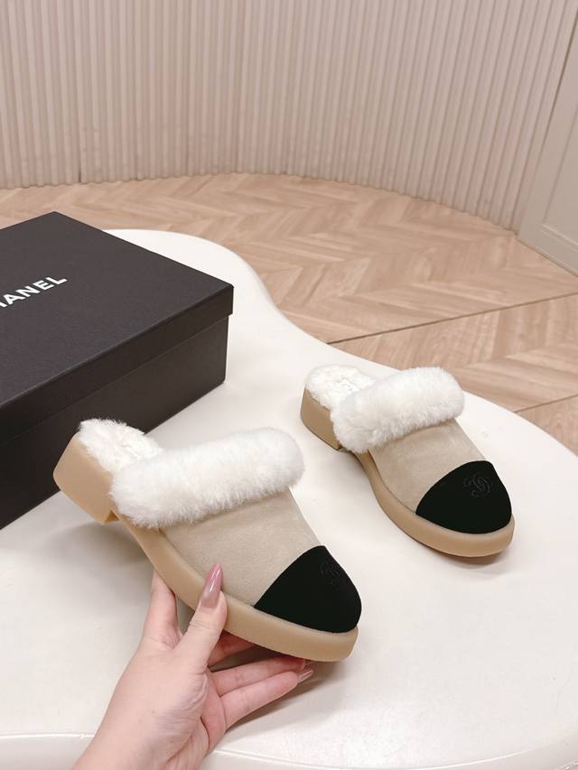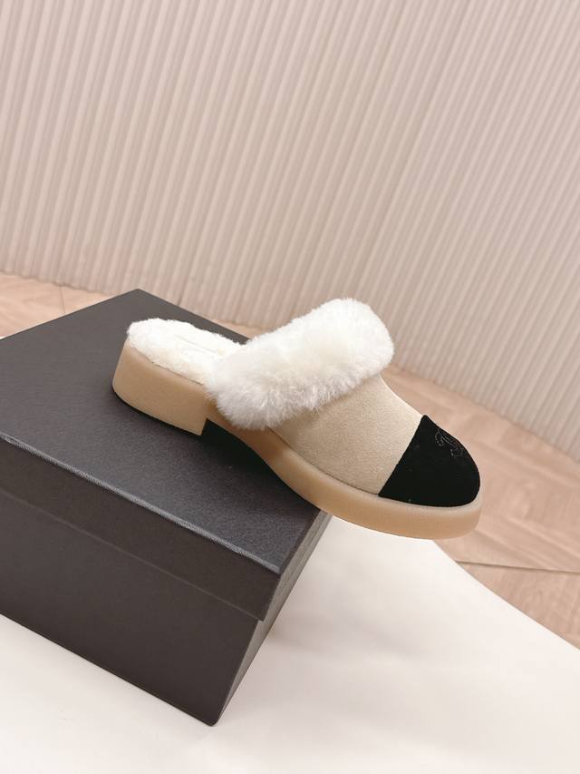 半拖款 香奈儿 Chanel 25K 秋冬新款毛毛拖鞋半拖 经典高级优雅温柔随心所欲 ~ 上脚超级无敌好看舒服 厚底更彰显气质 面料:进口羊卷毛 柔软舒适 内里