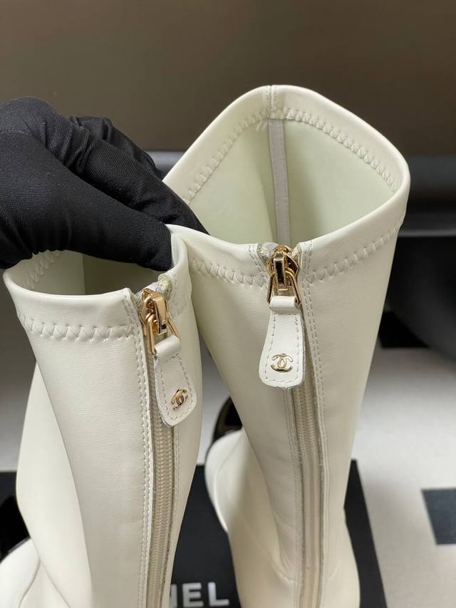 单鞋 中靴 长鞋 Chanel 香奈儿2660秋冬走秀款双C巨型珍珠跟 在米兰时尚的T台上 亮相便艳惊四座,成功晋升为潮流人士的梦中情靴 。经典的双C标志与巨型珍珠跟设计相结合,简洁大气又尽显品牌格调 随便一拍都很出片。那巨型珍珠鞋跟更是神来之笔,突破常规的设计 不仅为整体增添了奢华浪漫的氛围 。 鞋面采用高品质弹力材质 能完美贴合小腿线条 修饰腿型 让双腿看起来笔直修长,而且穿脱方便 行走时也不会有束缚感。从繁华都市的街头 派对的现场 它都能轻松适配,搭配一条修身牛仔裤 瞬间化身酷飒的街头潮人,换上一袭