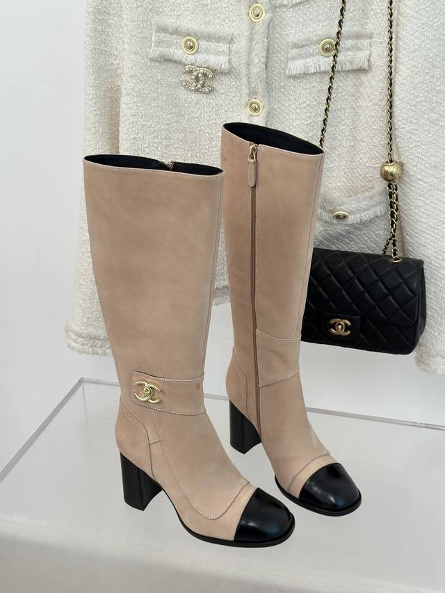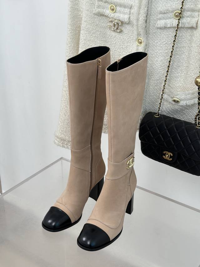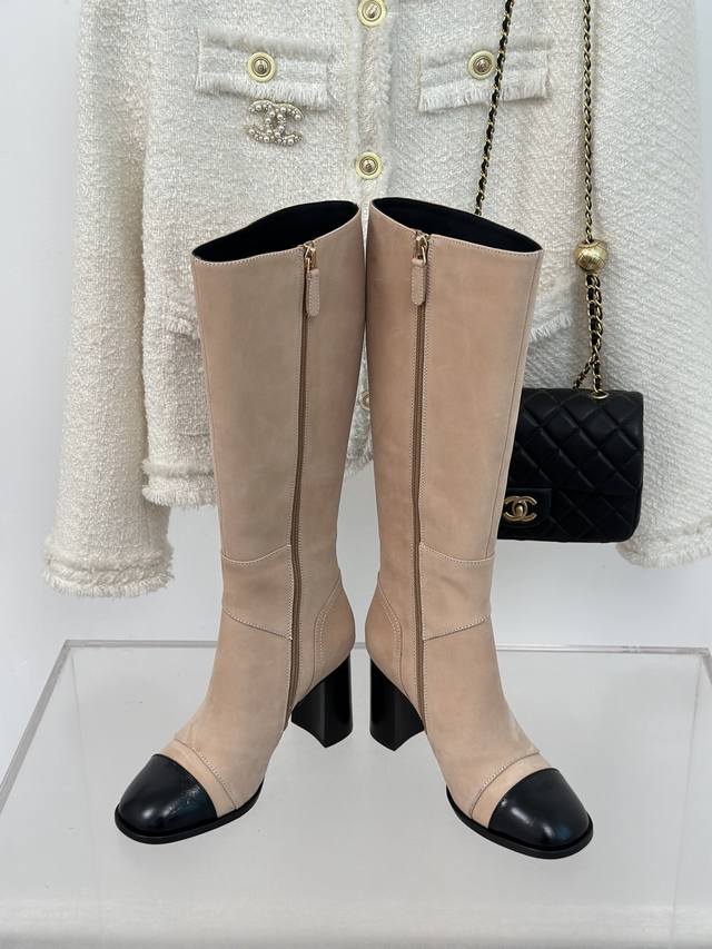 厂价 Chane*|小香23C秋冬新品 双C书包扣粗跟长靴系列 鞋面采用进口小牛皮 内里垫脚都是丝绸羊皮 意大利进口牛皮大底 跟高:8Cm Size:35-39 40 41定制