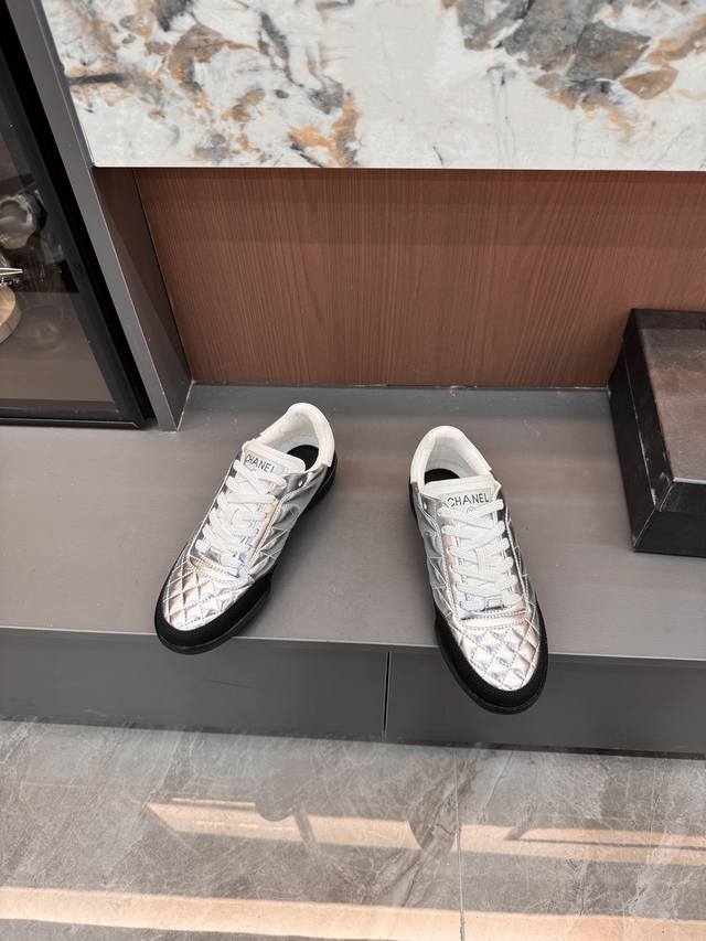 FFF 哑光 DDD 新款新色Chanel香奈儿最新款 小香棒球鞋 网球鞋 黑白 熊猫配色 休闲 运动鞋 DDD 原版购入开发 做货 小香最新隐藏款网球鞋软菱格纹 柔软小羊皮配搭大鞋舌和经典双C Logo满满的复古感又是最最最百搭的黑白配色 Coco女孩必入的一款休闲鞋 超级柔软 DDD 配送专柜精美包装 DDD 面料:原版定制小羊皮菱格纹 DDD 内里:进口定制羊皮+网里 DDD 鞋底:原版开防滑Tpu材质 DDD 底厚:2.5Cm DDD Size: 35-40 DDD