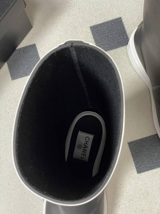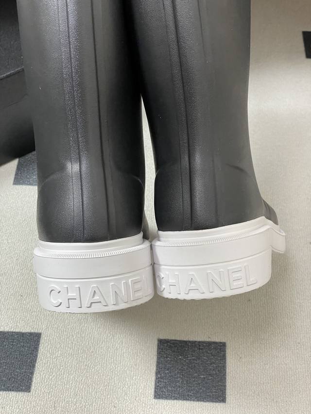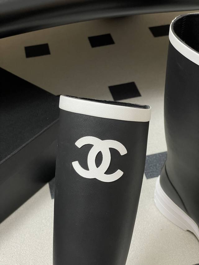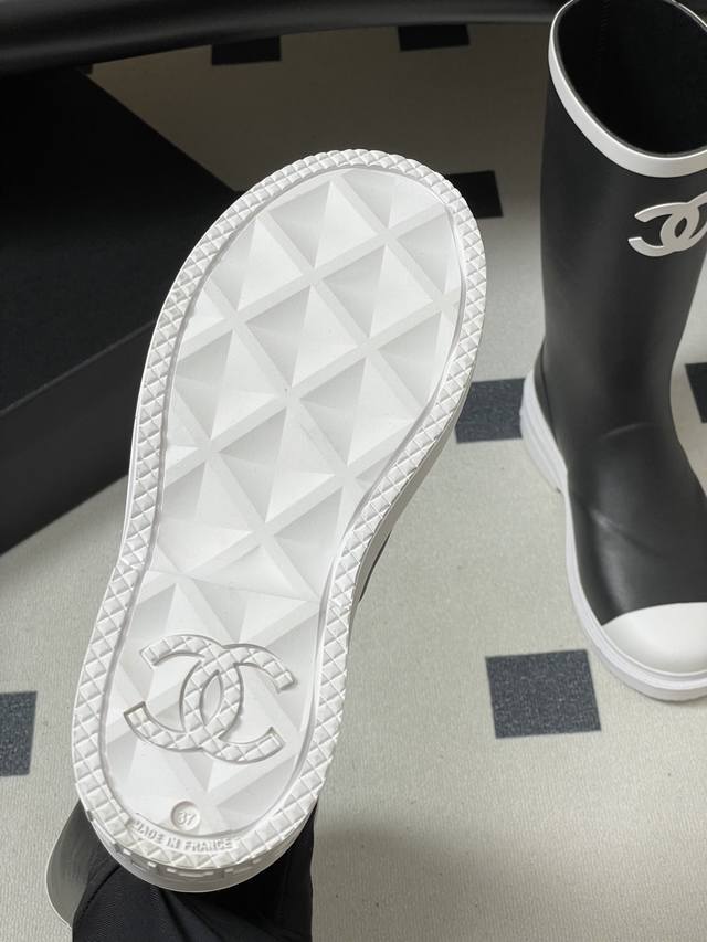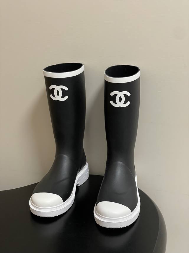 工厂p价 女装女鞋 运动原单-顶级品质 无缝 DDD Chanel 小香26C最新黑白配色 经典款雨靴 橡胶防滑雨靴长筒骑士靴 DDD 防水无缝天然生橡胶材质,简约大气,黑色靴筒搭配白色翻边设计,鞋头和侧面点缀经典双Clogo,辨识度超高!厚底设计提升舒适度,防滑性能优秀,雨天或户外都能轻松驾驭。 DDD 采用防水橡胶材质,兼具实用性与耐用性,适配雨天等潮湿场景经典黑配色+品牌双C标识,风格简约高级,自带轻奢质感。鞋型是中筒款式,靴口和鞋头的撞色设计增加细节层次,不单调 DDD 厚底鞋型兼顾舒适脚感与轻微