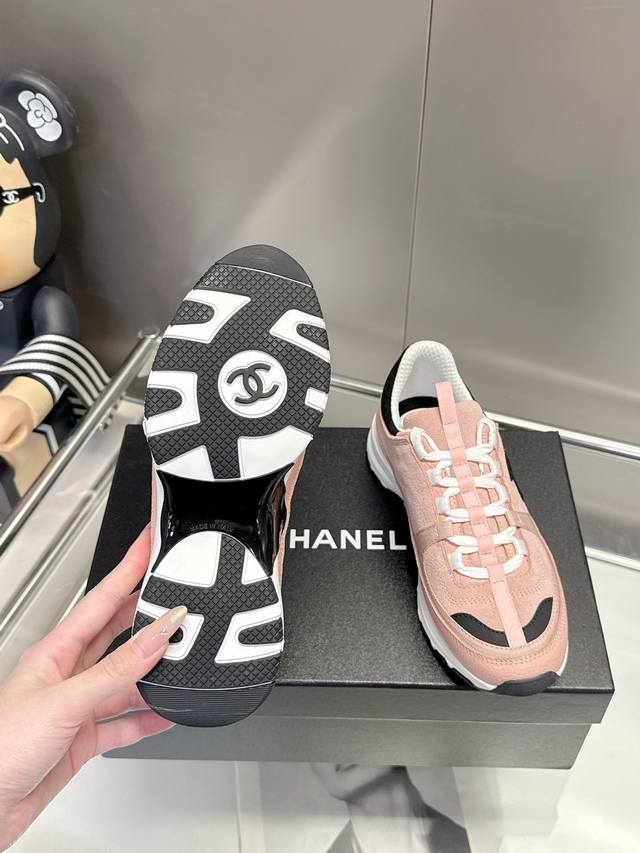 工厂p价 女装女鞋 运动原单香奈儿运动鞋 Ddd 有简约纯粹的白,经典百搭,适配各种日常穿搭;还有粉金、黑金等组合,粉金甜美又闪耀,黑金则是酷飒与高级感并存,轻松点亮造型。 Ddd 标志性双C元素融入鞋身,是品牌身份的低调彰显,也是时尚辨识度的来源。鞋型线条流畅,兼顾运动感与优雅格调,厚底设计增添潮流感,还能悄悄拉长腿部线条。 Ddd 材质:Yb 皱漆+反绒 Ddd 底:Yb 双色橡胶+Tpu Ddd 码数:5-40 41定制不退换 DDD