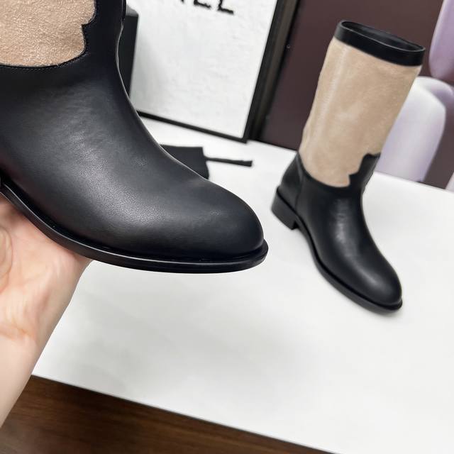工厂P价 女装女鞋 运动原单高版本香奈儿Chanel,小香2025款秋冬专柜最新款短靴,本季秋冬季节必备单品!!香奈儿女士钟爱简约又难以抗拒系 搭配展现与众不同的穿搭风格、自由混搭闪耀到位跟紧香奶奶时尚步伐!!!顶级工艺质感完美呈现,无论任何细节均可对比专柜,最好级别的顶级货,随意进出专柜!! 面料:进口牛皮 牛反绒 内里:羊皮里 垫脚:羊皮 大底:原版真皮大底 跟高:3.5厘米 靴筒高度:总高9寸 码数:35-40 40 41为定制不退换