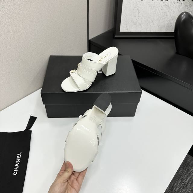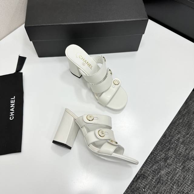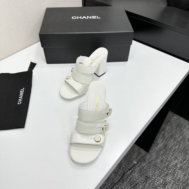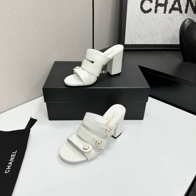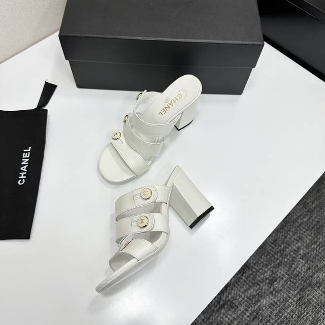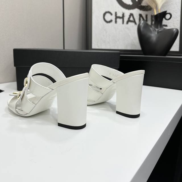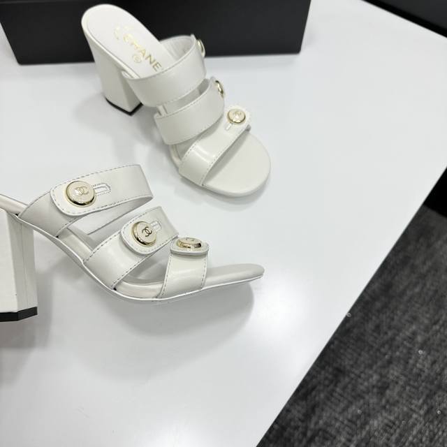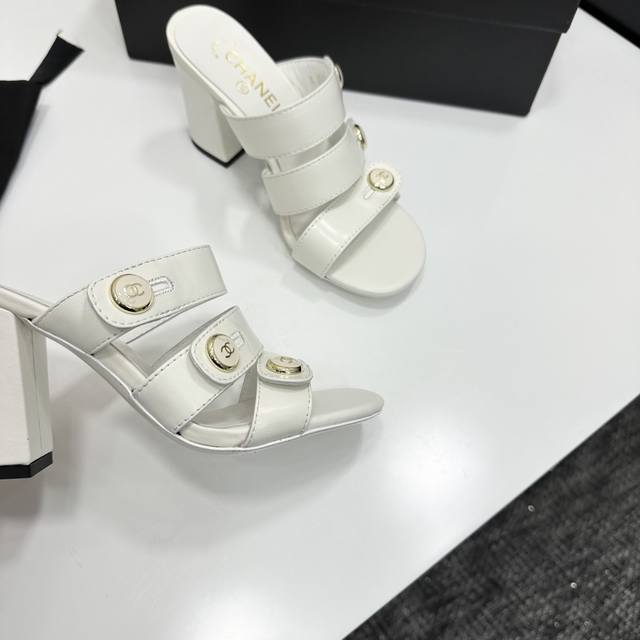 香奈儿最新系列,9.0Cm跟高,出厂价P 粗跟方头拼色百搭高跟后空女凉鞋...