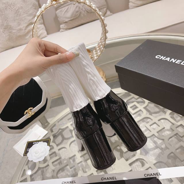 工厂p价 女装女鞋 运动原单 Chane*25Ss秋冬小香粗跟袜子靴 DDD 袜筒采用针织弹力毛线,上脚舒适显瘦!靴筒可下翻调节高度,搭配各种长短下装毫无违和感,可尽情实践关于美的各种搭配! DDD 鞋面:牛漆皮袜筒 DDD 内里:羊皮内里 DDD 跟高:8.5Cm DDD 鞋底:意大利真皮大底 DDD 码数:35-39 34,40,41定制不退换 DDD
