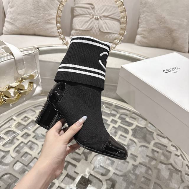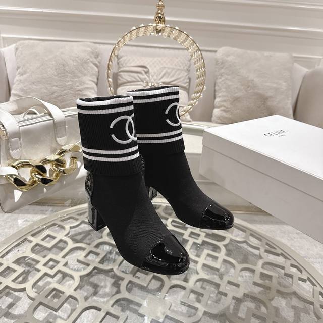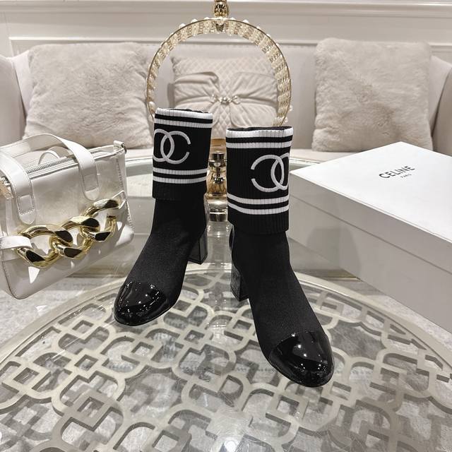 / 工厂p价 女装女鞋 运动原单 Chane*25Ss秋冬小香粗跟袜子靴 袜筒采用针织弹力毛线,上脚舒适显瘦!靴筒可下翻调节高度,搭配各种长短下装毫无违和感,可尽情