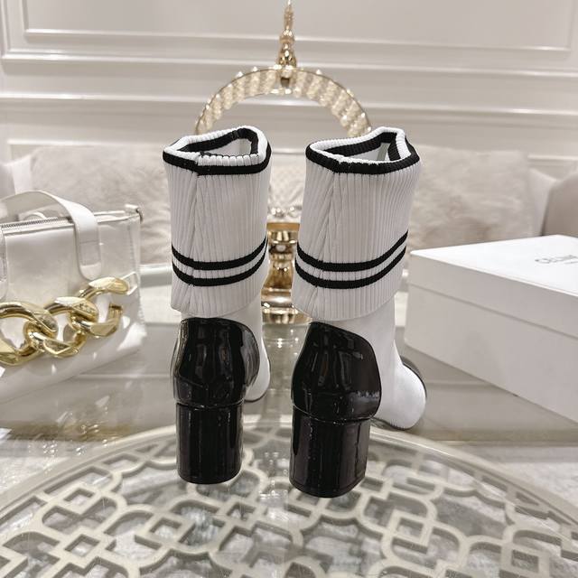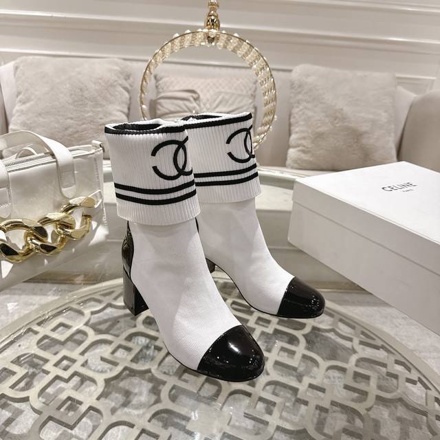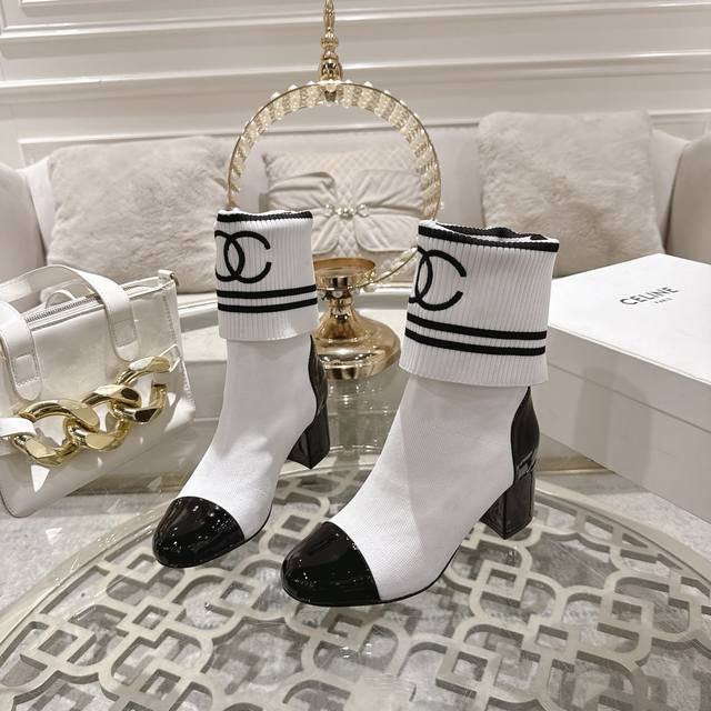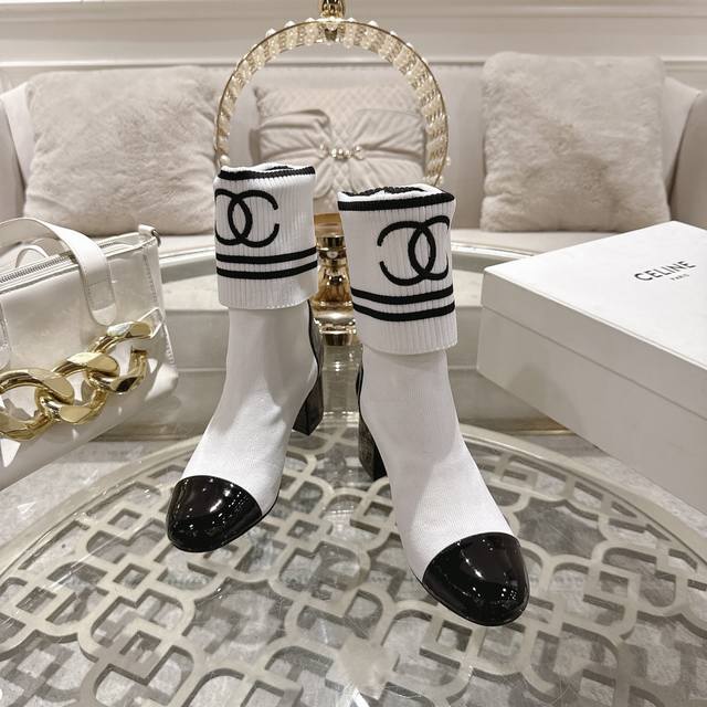 工厂p价 女装女鞋 运动原单 Chane*25Ss秋冬小香粗跟袜子靴 袜筒采用针织弹力毛线,上脚舒适显瘦!靴筒可下翻调节高度,搭配各种长短下装毫无违和感,可尽情