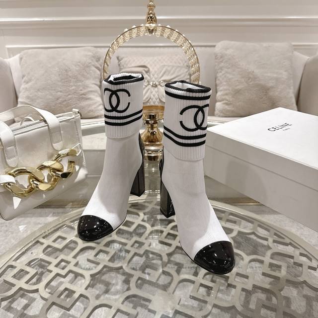 工厂p价 女装女鞋 运动原单 Chane*25Ss秋冬小香粗跟袜子靴 袜筒采用针织弹力毛线,上脚舒适显瘦!靴筒可下翻调节高度,搭配各种长短下装毫无违和感,可尽情