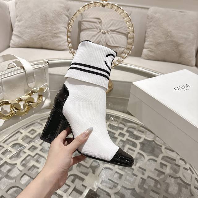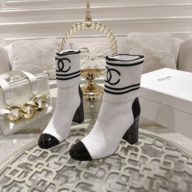 / 工厂p价 女装女鞋 运动原单 Chane*25Ss秋冬小香粗跟袜子靴 袜筒采用针织弹力毛线,上脚舒适显瘦!靴筒可下翻调节高度,搭配各种长短下装毫无违和感,可尽情