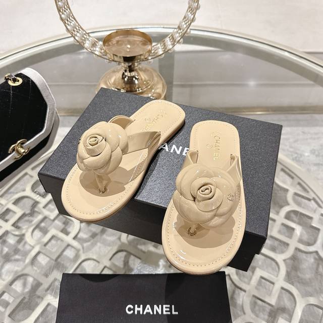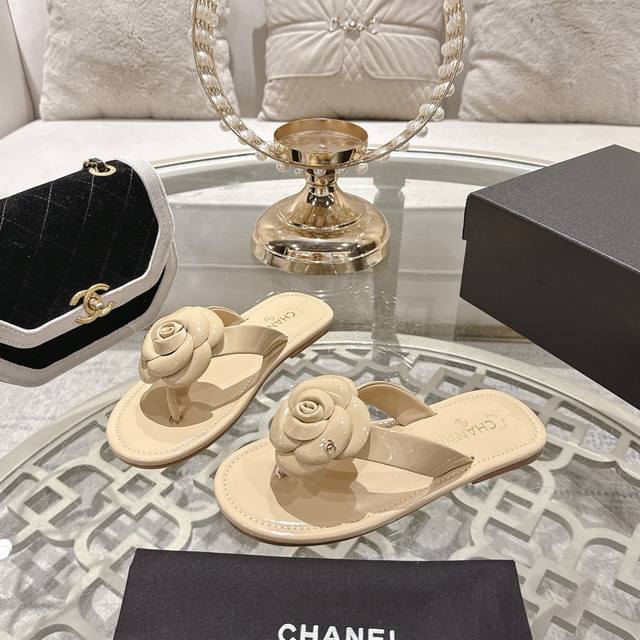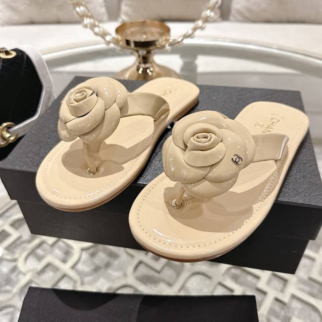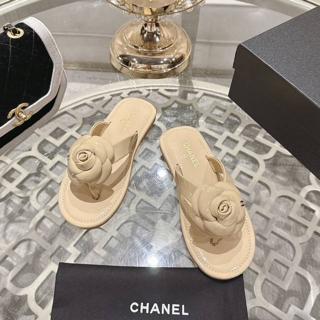 工厂p价 女装女鞋 运动原单 Chanel香奈儿25Ss新品 DDD 山茶花夹脚人字拖鞋 DDD 这一系列这真的是绝了 怎么会这么美! DDD 夏天真的是无敌搭配可盐可甜~ DDD 鞋面:进口牛漆皮 DDD 内里:小羊皮 DDD 大底:意大利进口真皮大底 DDD 码数:35-39 40 41 42定制 DDD 包装:专柜最新礼盒包装 DDD