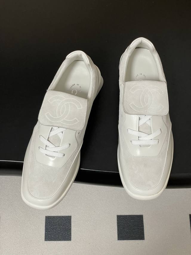 工厂p价 女装女鞋 运动原单 DDD Chanel 小香Vintage经典中古风双C翻盖运动鞋系带休闲鞋德训鞋C家足球鞋 DDD 当翻盖设计解锁复古巧思,双C标志沉淀品牌传奇,这双鞋便成了跨越时光的时尚注脚。翻盖结构下的双C标识暗藏惊喜,开合间既是品牌基因的高调彰显。也是复古美学的低调表达,每一道缝线都承载着工艺传承,每一处磨损都记录着时光故事。作为兼具穿戴价值与收藏潜力的中古单品,它既是日常穿搭的时髦利器,也是小香将优雅融入运动基因的鲜活证明,毕竟从1966年品牌首推运动鞋款起。这种“毫不费力的时髦”便
