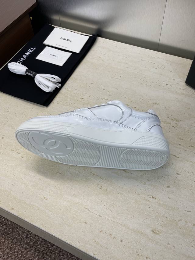 / 工厂P价P女码 男码280 Chanel 香奈儿2025秋冬新款情侣装系带休闲鞋 小香字母Logo厚底圆头拼色运动滑板鞋 材质:鞋面进口牛皱漆皮+水染羊皮内里+