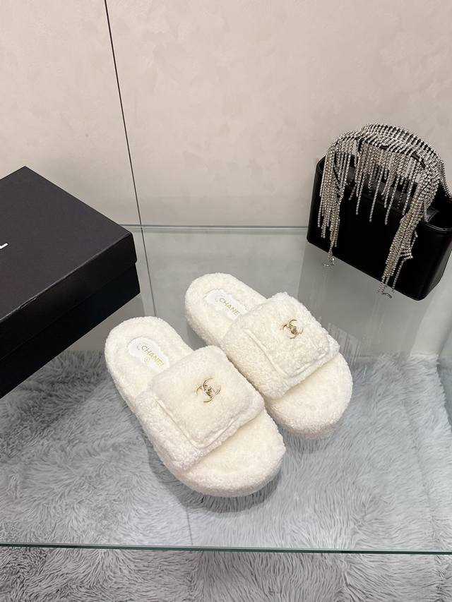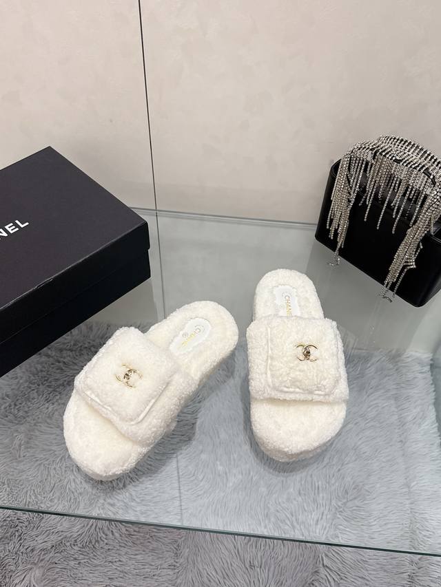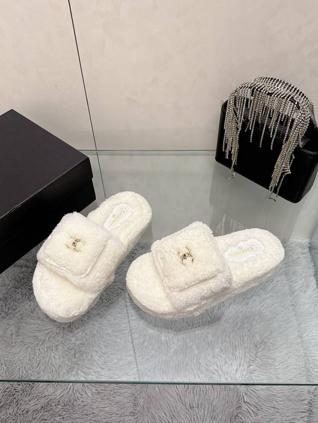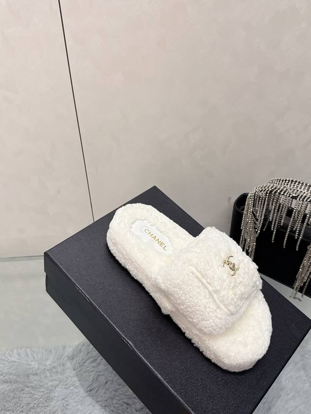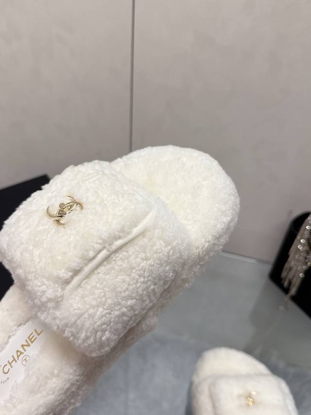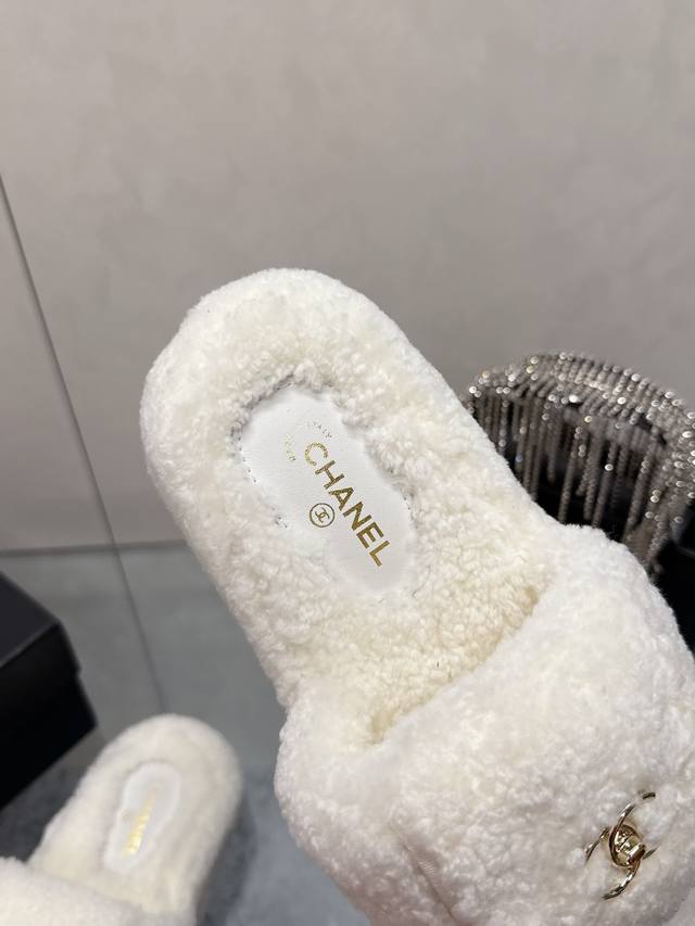 工厂P价P: 香奈儿羊毛 毛拖系列 Chane*25S小香奈儿秋冬锁扣爆品蝴妥妥的自留款!!比经典款Slingback舒服太多啦!每个颜色上脚都很显白 首选金粉