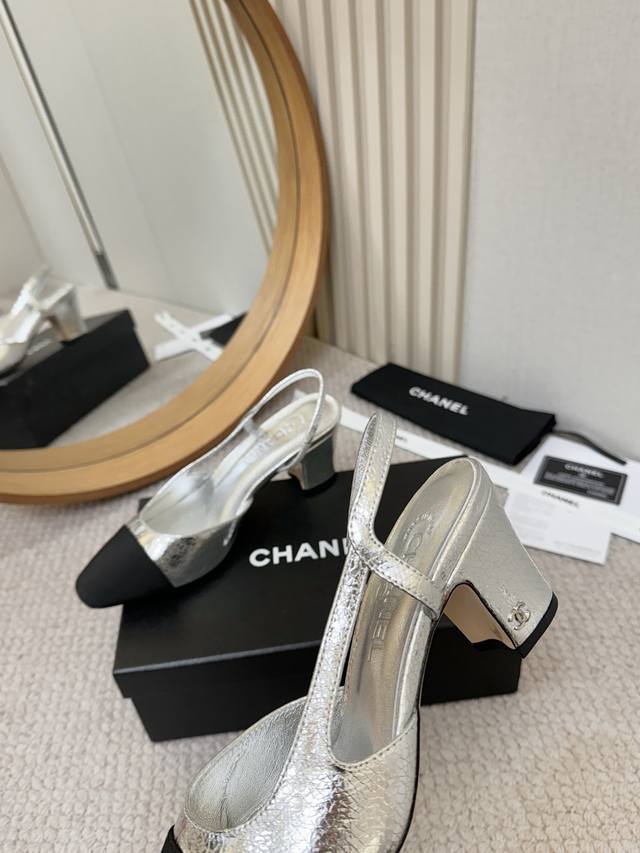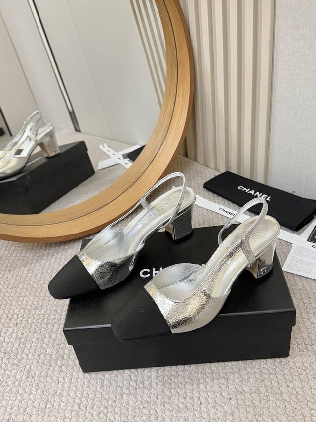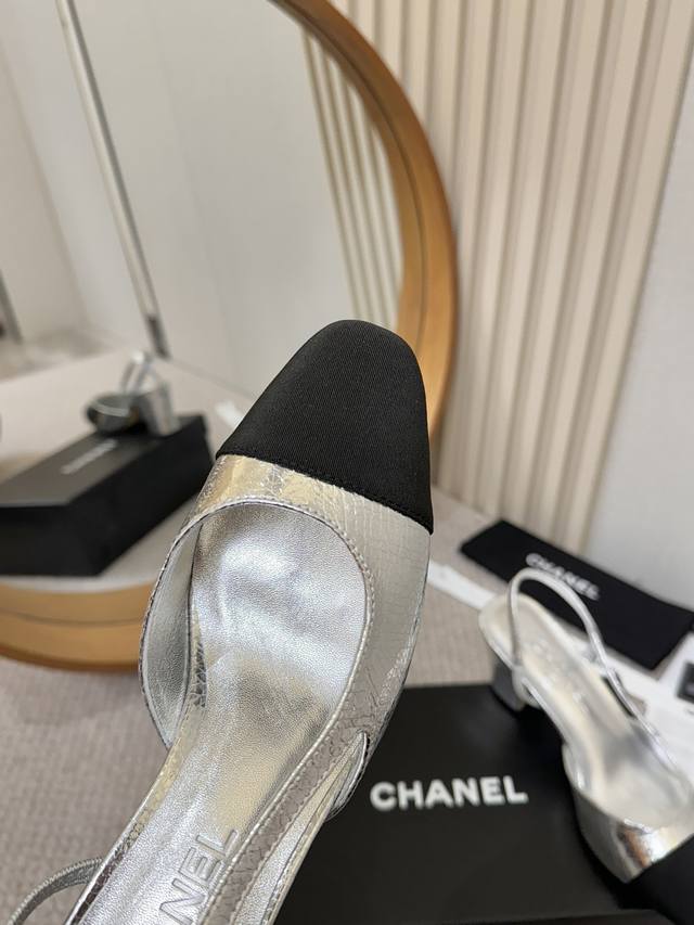 Chanel 春夏季经典拼色 时尚走秀款 拼接色混搭,内侧空包头风格,6.5Cm粗跟小Logo点缀,演绎时尚!怎么搭怎么好看系列!34...