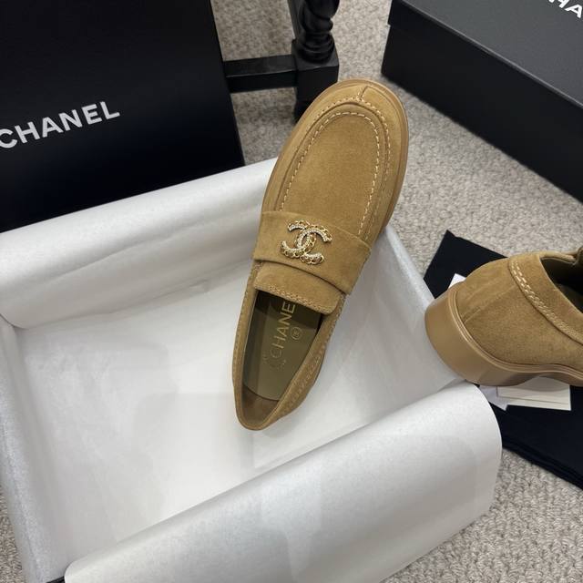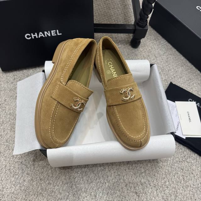 / 秋冬款 # 香奈儿新款 双C扣 乐福鞋 秋冬香家必备爆款 女神系列,拥有香家特色优雅名媛气质,超级耐看,让人无法抗拒,心动! 鞋面:进口牛反绒 原版开模五金Lo
