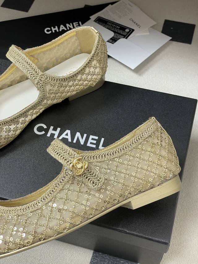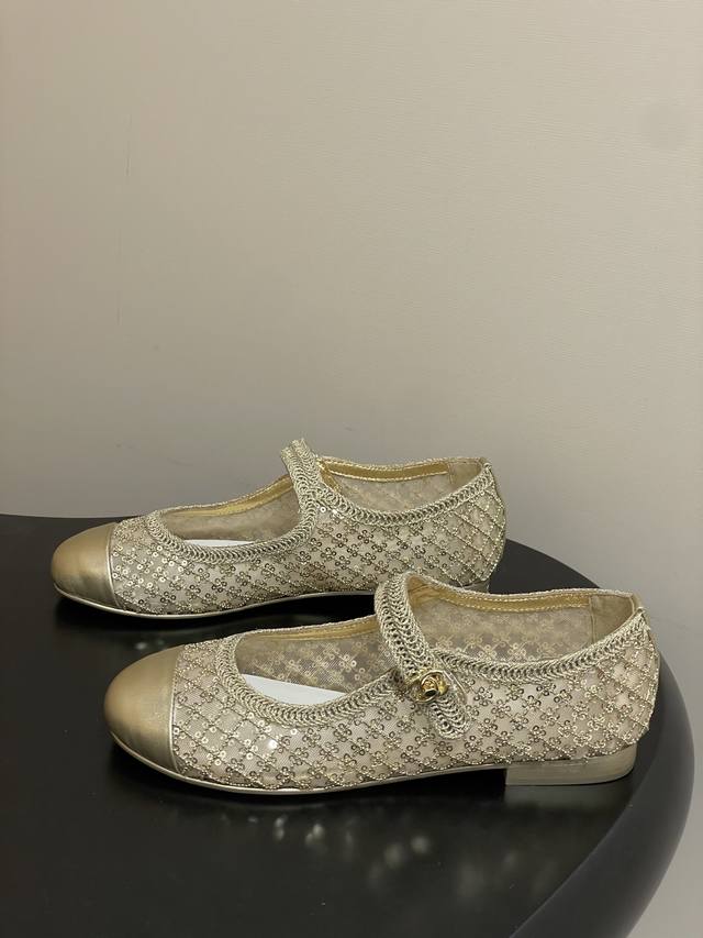 / 纯手工编织 春夏新款Chanel 25B 最新配色 亮片平底芭蕾舞鞋玛丽珍单鞋网纱镂空单鞋 经典双C蝴蝶结,香家高级感这块总让人大写的服气 看起来简单的款式 但