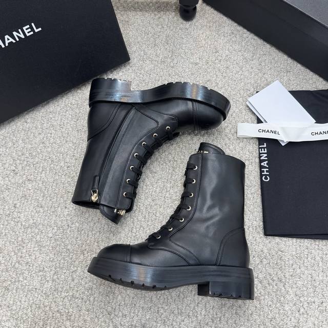 经典款 Chanel|小香25K 双C经典骑士短靴 靴口链条装饰是灵魂所在 冷光质感与拼色材质形成巧妙反差 这双短靴不止是秋冬鞋履 更是Chanel用经典基因与