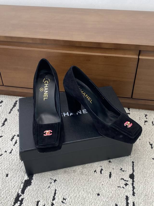 顶级品质 经典之作,代购级别 Chanel 香奈儿最值得拥有的经典款 粗跟方头拼色百搭高跟单鞋,材质:鞋面采用进口全新混种羊皮内里高级混种羊皮+意大利进口牛皮底. Size:35–39 40定制不退换 . 跟高: 6.5Cm