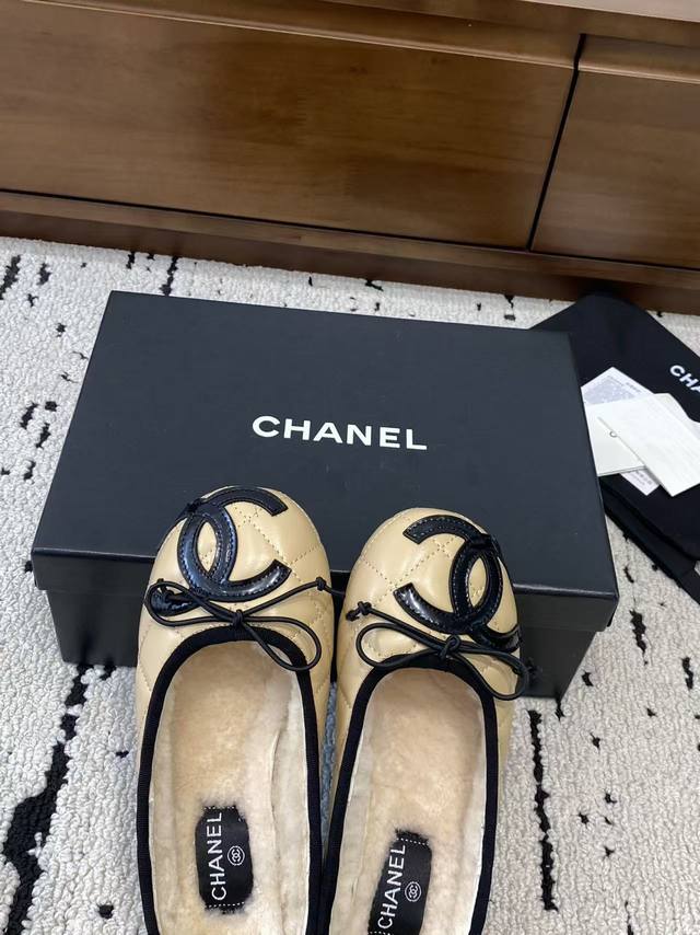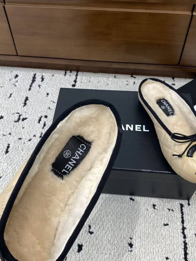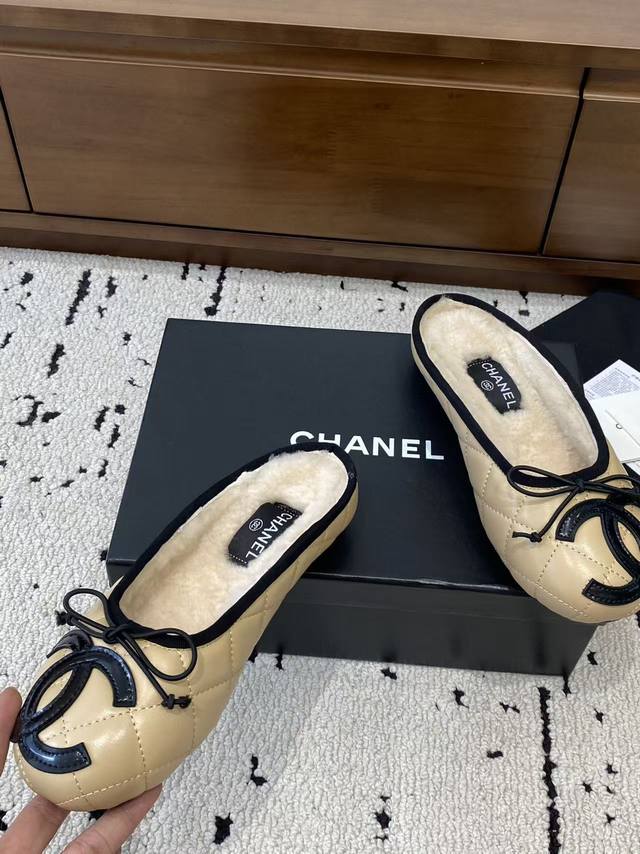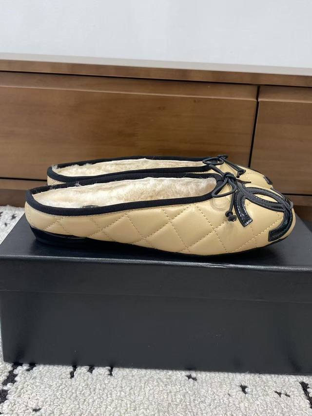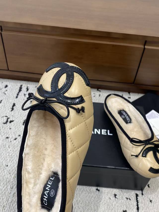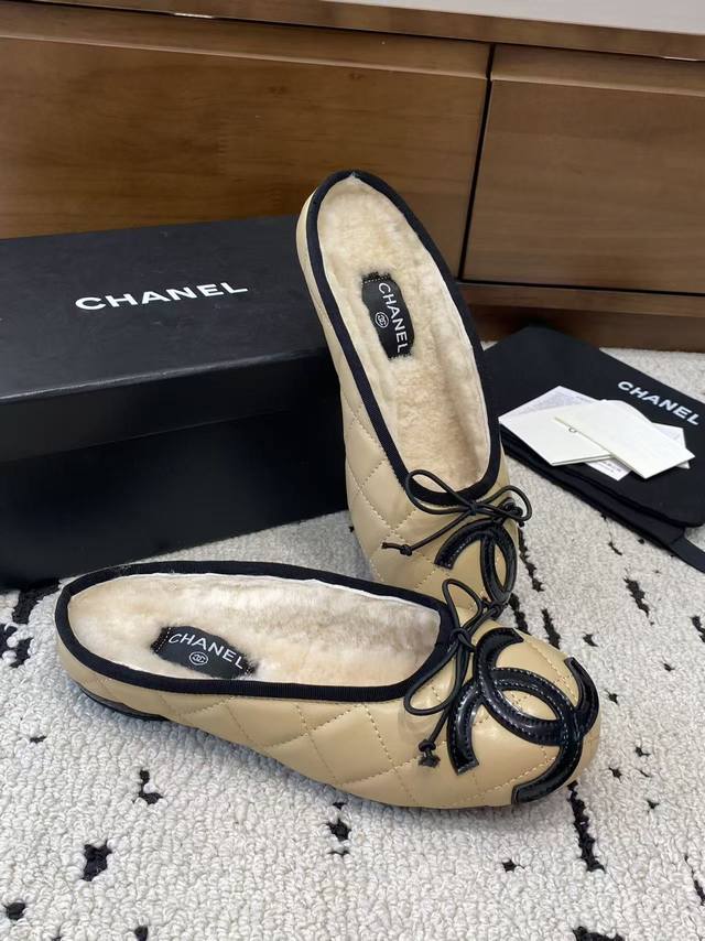 / 顶级版本 Chane*2025新款中古康鹏鞋平底鞋芭蕾舞毛毛拖鞋上新,这双简直太好穿惹!!通体小羊皮山羊皮+内里真羊毛,穿上脚舒适度满分~ 经典双配色 标志性双