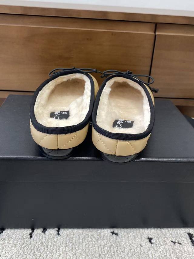 顶级版本 Chane*2025新款中古康鹏鞋平底鞋芭蕾舞毛毛拖鞋上新,这双简直太好穿惹!!通体小羊皮山羊皮+内里真羊毛,穿上脚舒适度满分~ 经典双配色 标志性双