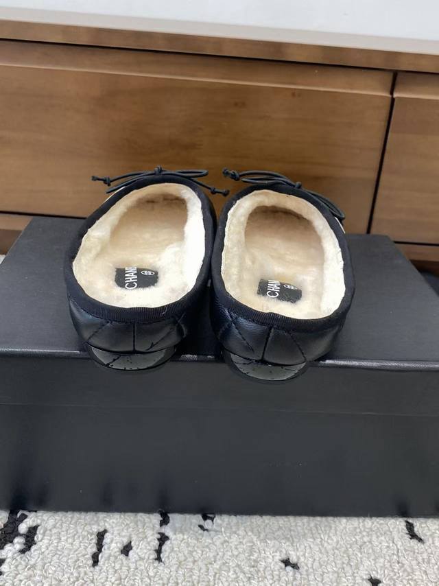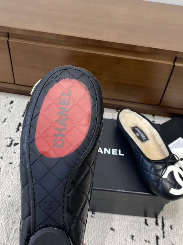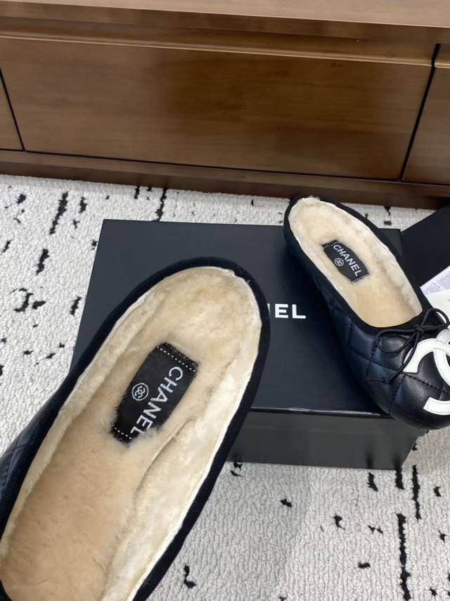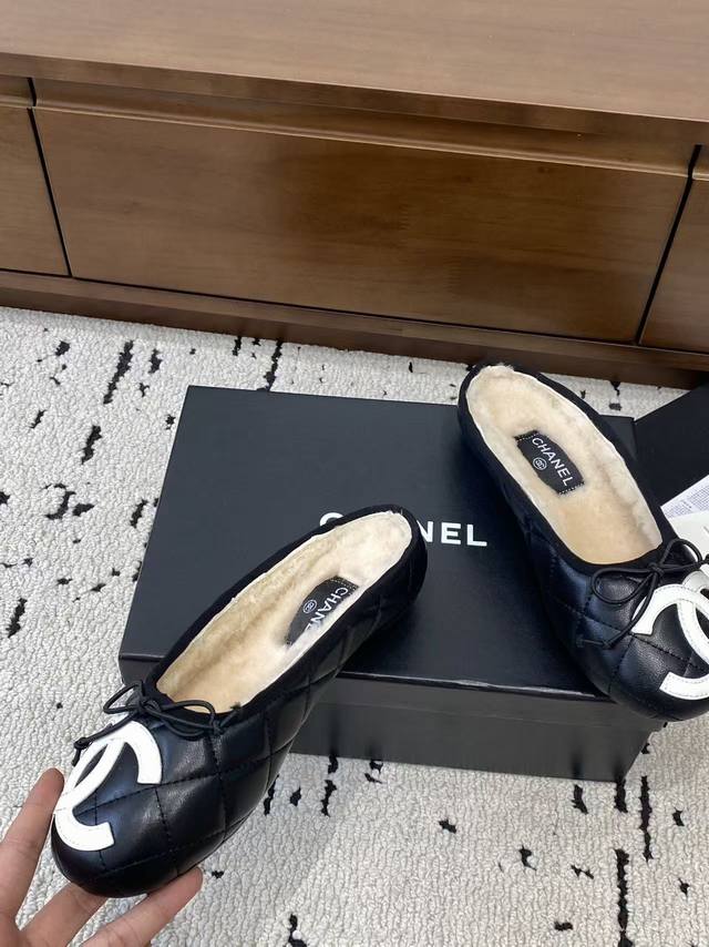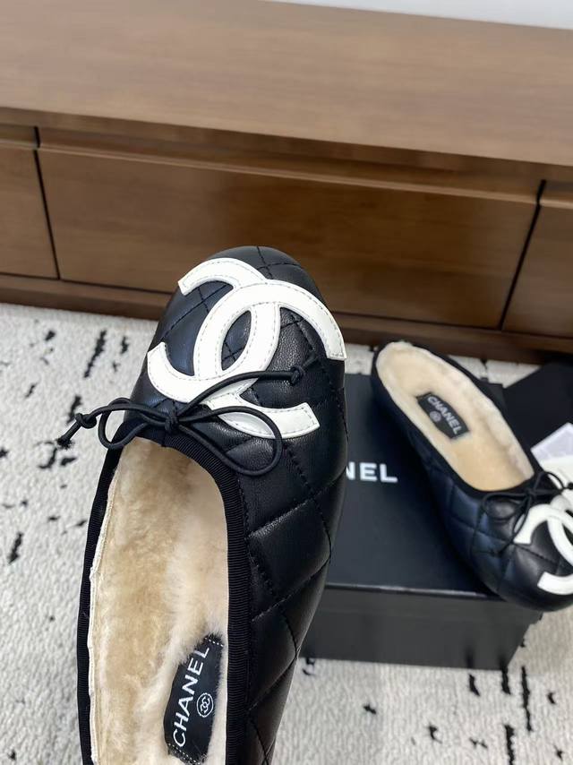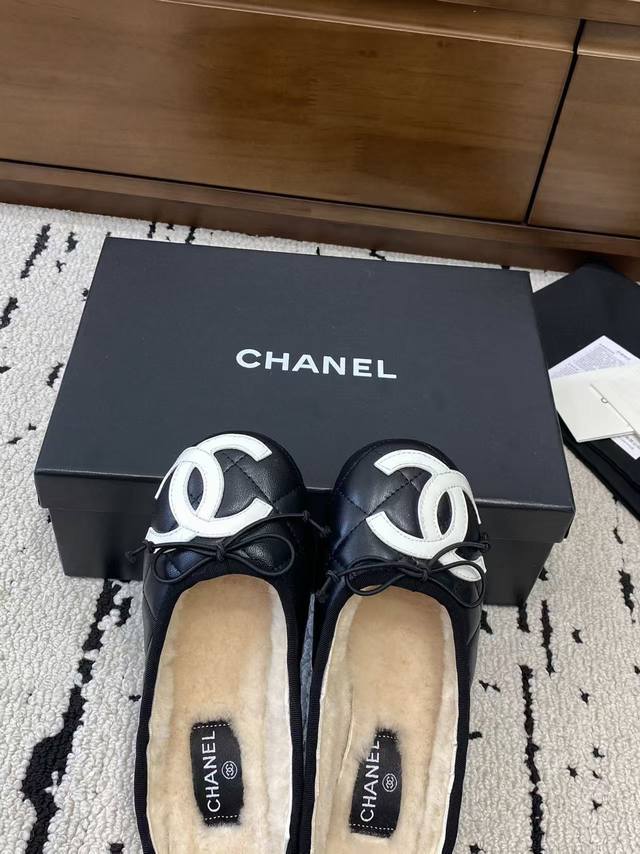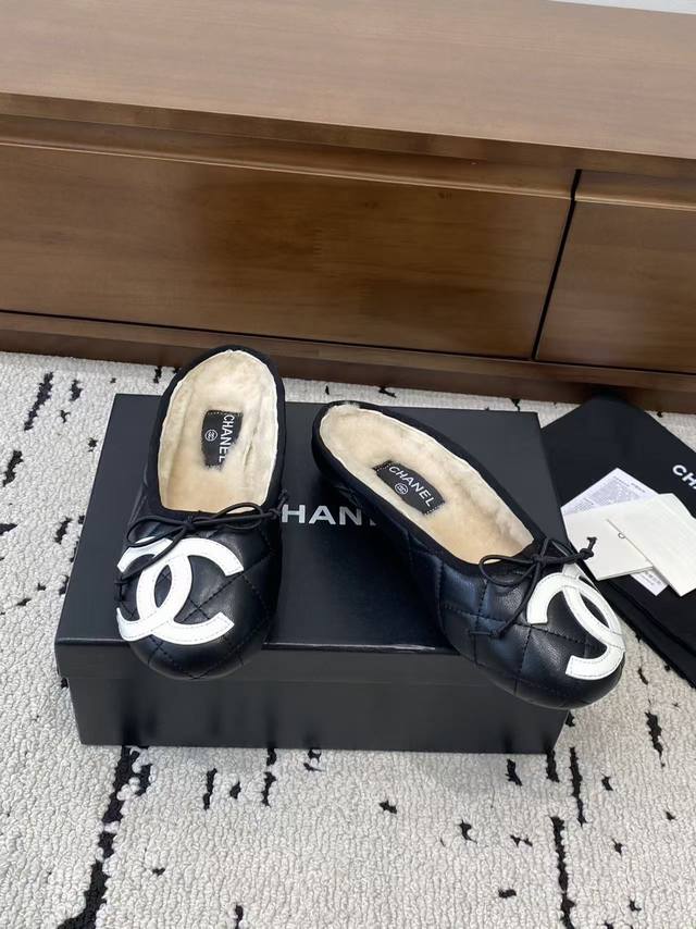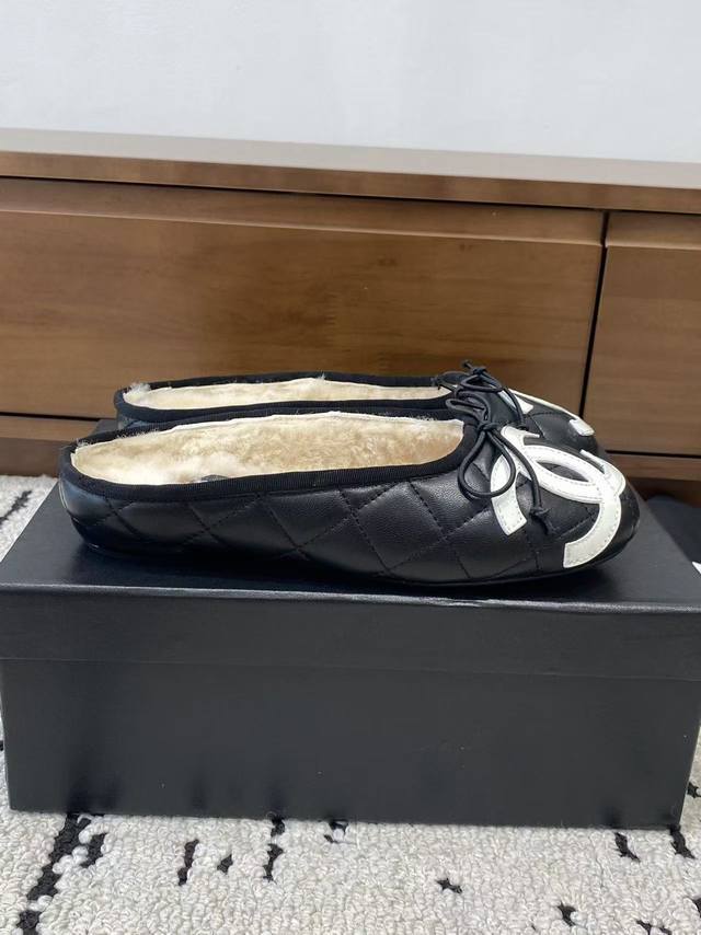 / 顶级版本 Chane*2025新款中古康鹏鞋平底鞋芭蕾舞毛毛拖鞋上新,这双简直太好穿惹!!通体小羊皮山羊皮+内里真羊毛,穿上脚舒适度满分~ 经典双配色 标志性双