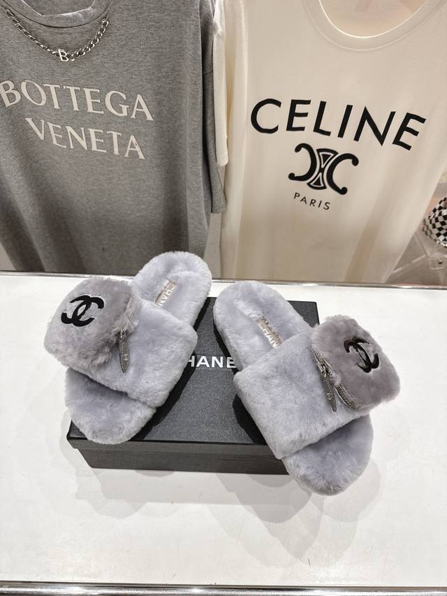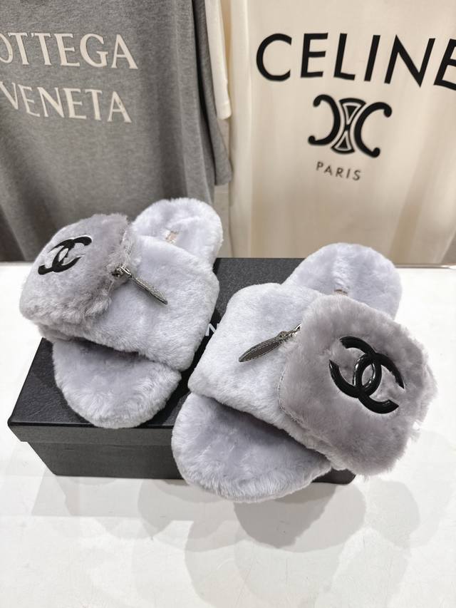 高版本出厂 官网同步.新品毛拖 顶级版本Chanel*小香2025Ss独家爆款系列毛毛拖鞋!秋冬宝藏时髦单品!随意搭配怎么穿都好看 鞋面 垫脚:原版进口羊毛 大