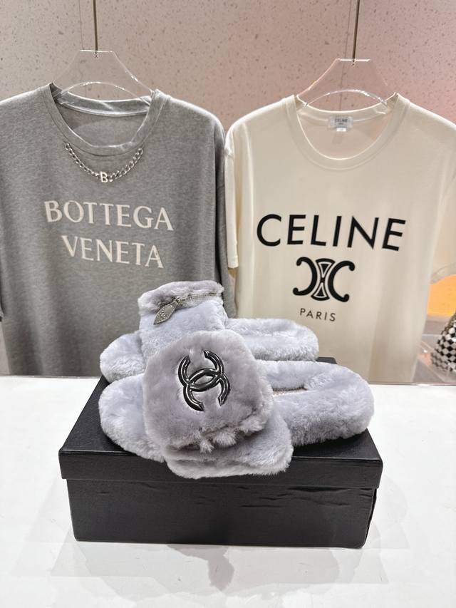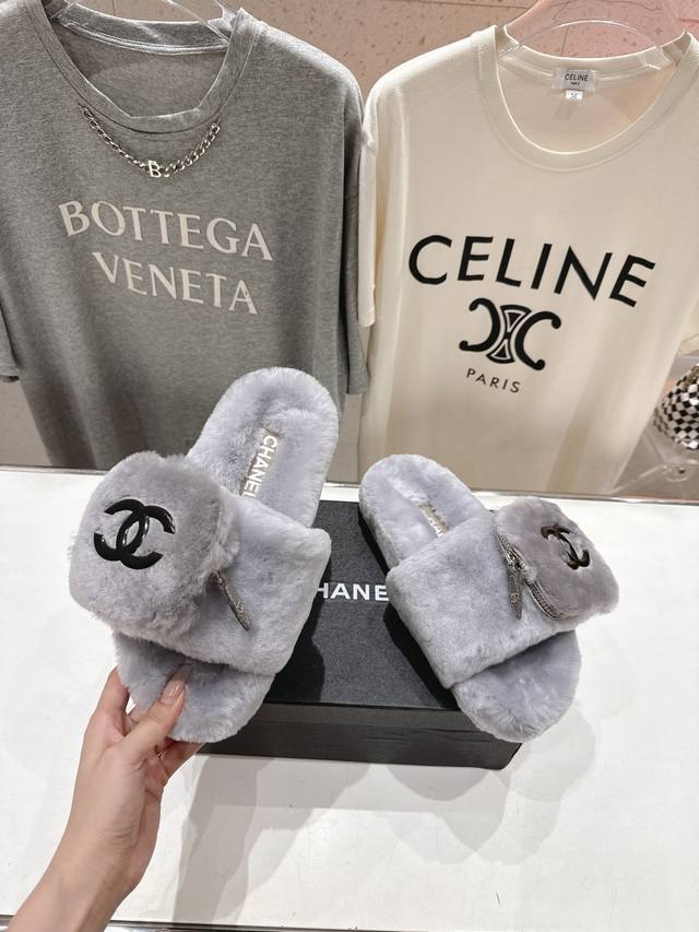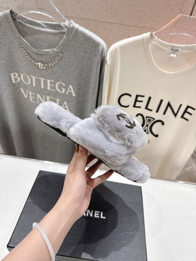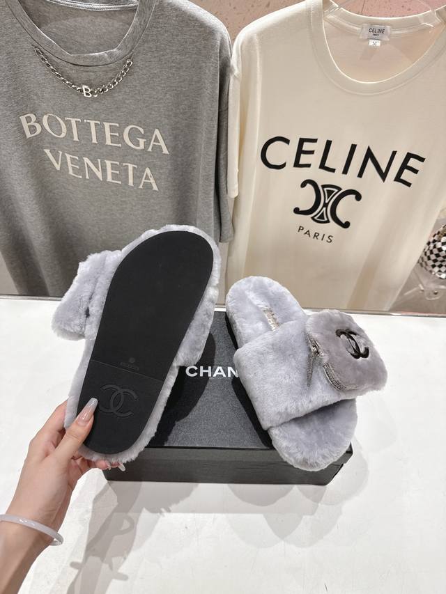 / 高版本出厂 官网同步.新品毛拖 顶级版本Chanel*小香2025Ss独家爆款系列毛毛拖鞋!秋冬宝藏时髦单品!随意搭配怎么穿都好看 鞋面 垫脚:原版进口羊毛 大