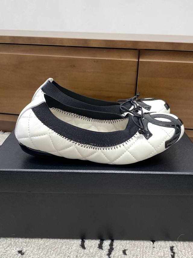 高版本 Chane*|小香经典大双C蝴蝶结 芭蕾舞鞋 一起做个奶乖奶乖的香香女孩呀 看到这双鞋的时候我是直接原地心动 经典与艺术感兼具 日常出街造型随你凹! 鞋