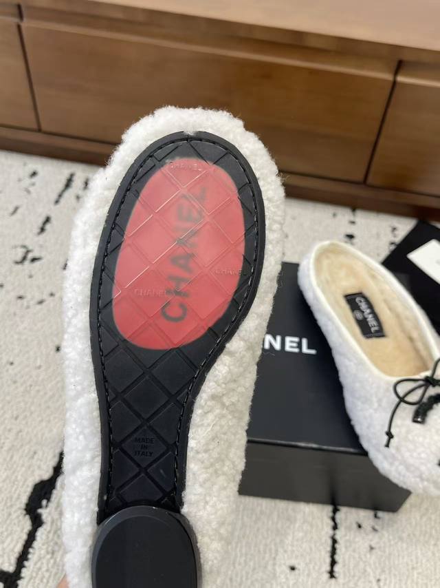2025秋冬Chanel香奈儿羊毛拖鞋毛里平底包头半拖秋冬新款包头半拖!大双Clogo 每逢秋冬来临 毛拖是必不可少的单品 不仅足够保暖 还能拥有舒适的触感 无论搭配什么都有种漫不经心的时髦 纯羊毛 一点人造毛的成分都没有 用手拨开是厚厚实实的 份量感足 原版鞋面 内里垫脚羊卷毛 软软的脚感我爱了 定制原版橡胶大底 底片耐磨防滑 Size:35-41 40.41定制