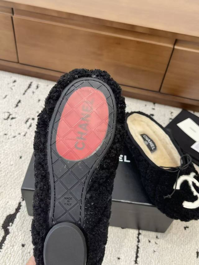 2025秋冬Chanel香奈儿羊毛拖鞋毛里平底包头半拖秋冬新款包头半拖!大双Clogo 每逢秋冬来临 毛拖是必不可少的单品 不仅足够保暖 还能拥有舒适的触感 无论搭配什么都有种漫不经心的时髦 纯羊毛 一点人造毛的成分都没有 用手拨开是厚厚实实的 份量感足 原版鞋面 内里垫脚羊卷毛 软软的脚感我爱了 定制原版橡胶大底 底片耐磨防滑 Size:35-41 40.41定制