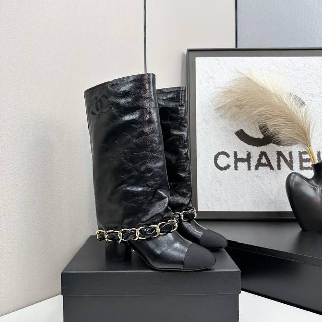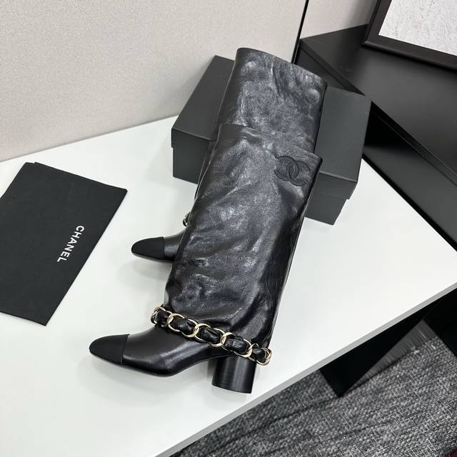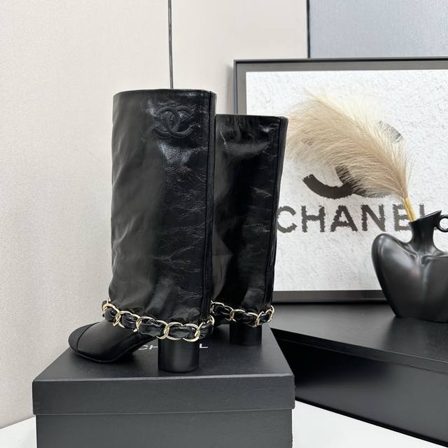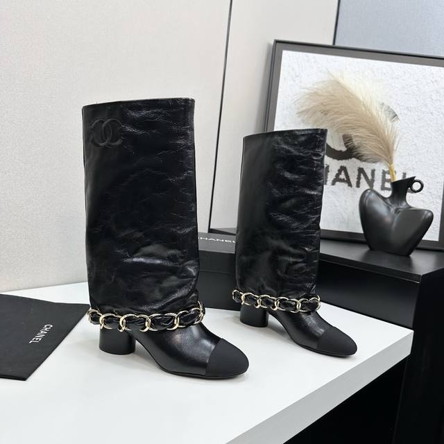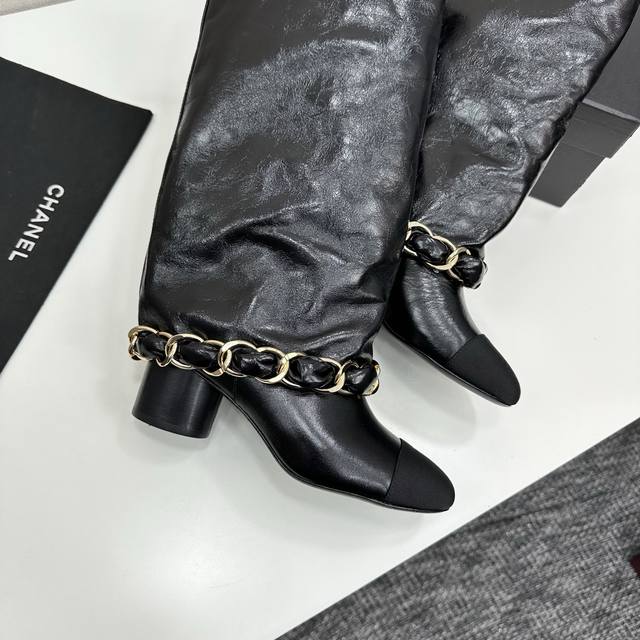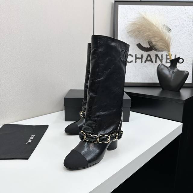 Chane*|小香25K秋冬新品大链条拼色 粗跟裤管靴 标志性的大链条设计,把经典玩出花! 粗旷却不失精致的金属链条环绕靴筒 在硬朗与柔美间达到精妙平衡 碰撞出极具冲击力的时尚火花。 行走时 链条随着步伐轻轻晃动 发出悦耳声响 举手投足间尽显潇洒不羁 。 中跟的巧妙设计 既保证了穿着的舒适度 无论是搭配简约的阔腿裤 营造随性大气的职场风格 还是与短裙短裤相配 展露青春活力的俏皮感 亦或是配上修身牛仔裤 演绎休闲时尚的都市风情, 每一步都踩在审美点上 是衣橱里能穿十年的“硬货” 面料采用原版定制皮料 内里垫
