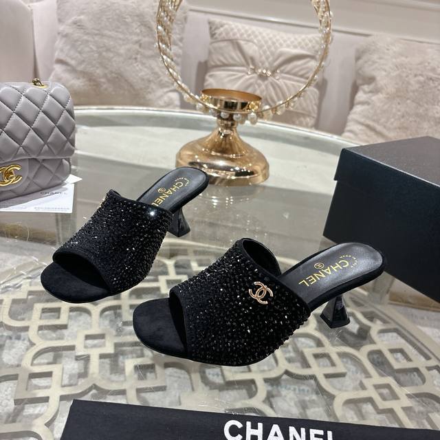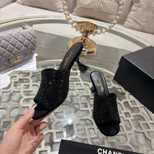 Chane* |小香25Ss春夏新品走秀款双C高跟拖鞋 走秀主推款这季太好看了 整体设计简约大气又耐看,鞋跟设计非常独特大胆,真让人爱不释手,不仅鞋型好看,上脚