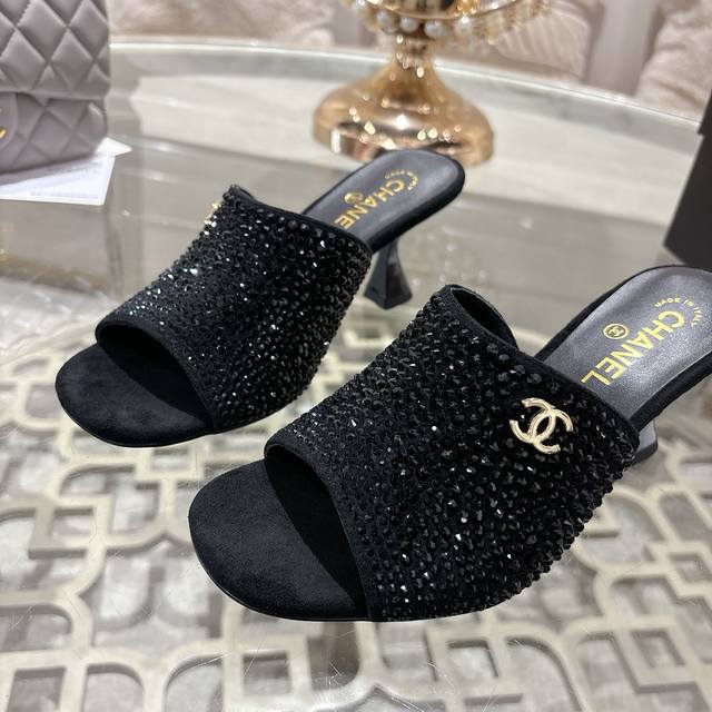 Chane* |小香25Ss春夏新品走秀款双C高跟拖鞋 DDD 走秀主推款这季太好看了 整体设计简约大气又耐看,鞋跟设计非常独特大胆,真让人爱不释手,不仅鞋型好看,上脚还特别舒服完全不累脚,想要达到原版脚感我们在楦头上没少下功夫,线条感弧度非常流畅,而完全不挤脚~ DDD 鞋面:原版定制进口漆皮 DDD 內里:进口羊皮 DDD 大底:意大利进口真皮大底 DDD 跟高:7Cm 9Cm DDD 尺码:35-39 34 40 41 42定制不退换 DDD 包装:原版最新礼盒包装 DDD 出厂价pp: 钻面+10