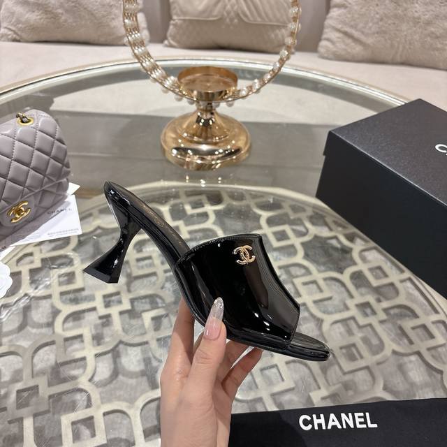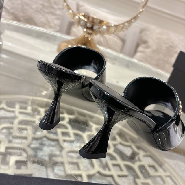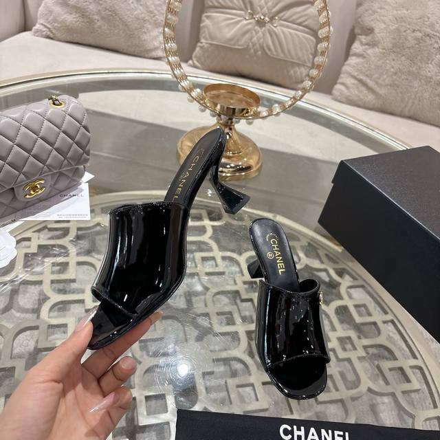 Chane* |小香25Ss春夏新品走秀款双C高跟拖鞋 DDD 走秀主推款这季太好看了 整体设计简约大气又耐看,鞋跟设计非常独特大胆,真让人爱不释手,不仅鞋型好看,上脚还特别舒服完全不累脚,想要达到原版脚感我们在楦头上没少下功夫,线条感弧度非常流畅,而完全不挤脚~ DDD 鞋面:原版定制进口漆皮 DDD 內里:进口羊皮 DDD 大底:意大利进口真皮大底 DDD 跟高:7Cm 9Cm DDD 尺码:35-39 34 40 41 42定制不退换 DDD 包装:原版最新礼盒包装 DDD 出厂价pp: 钻面+10