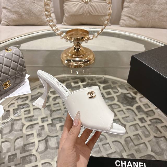 Chane* |小香25Ss春夏新品走秀款双C高跟拖鞋 DDD 走秀主推款这季太好看了 整体设计简约大气又耐看,鞋跟设计非常独特大胆,真让人爱不释手,不仅鞋型好看,上脚还特别舒服完全不累脚,想要达到原版脚感我们在楦头上没少下功夫,线条感弧度非常流畅,而完全不挤脚~ DDD 鞋面:原版定制进口漆皮 DDD 內里:进口羊皮 DDD 大底:意大利进口真皮大底 DDD 跟高:7Cm 9Cm DDD 尺码:35-39 34 40 41 42定制不退换 DDD 包装:原版最新礼盒包装 DDD 出厂价pp: 钻面+10