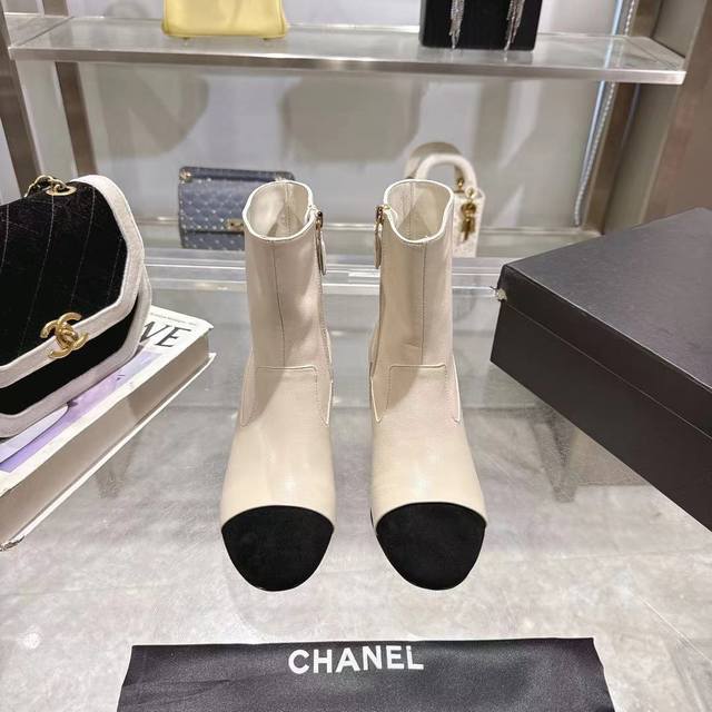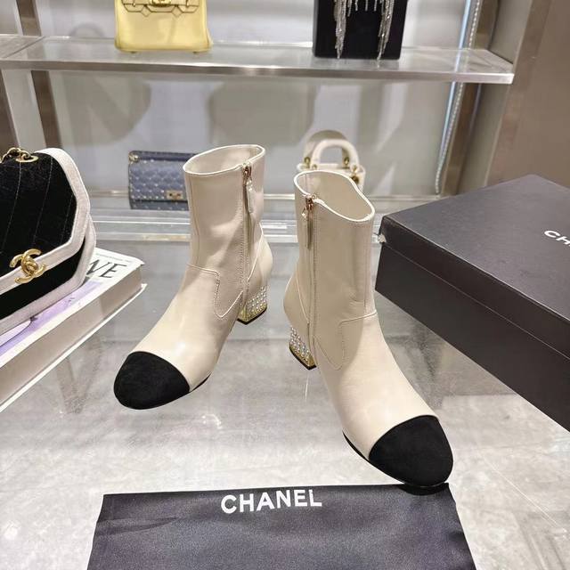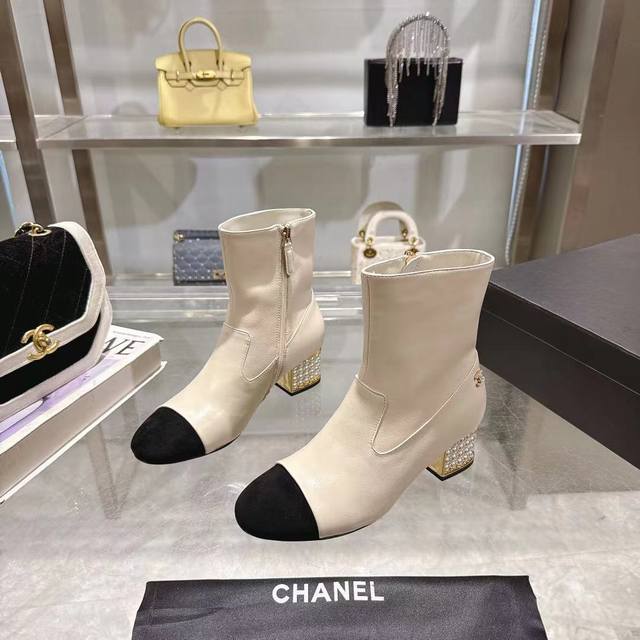 Chanel官网同步上新!秋冬新款短靴,珍珠跟经典拼接 小羊皮+羊猄 祼靴,跟高5Cm 码数35-42 40 41 42不退不换 出厂 DDD