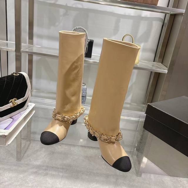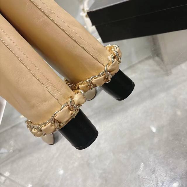 / Chanel 小香25B秋冬走秀款翻口大链条 粗跟裤管靴 标志性的大链条设计,经典拼色,大Logo电绣 鞋面:进口羊皮 鞋底:意大利真皮大底 跟高:5.5Cm
