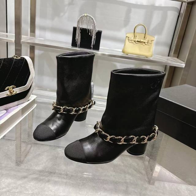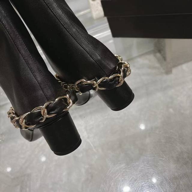 / Chanel 小香25B秋冬走秀款翻口大链条 粗跟裤管靴 标志性的大链条设计,经典拼色,大Logo电绣 鞋面:进口羊皮 鞋底:意大利真皮大底 跟高:5.5Cm