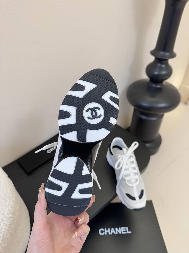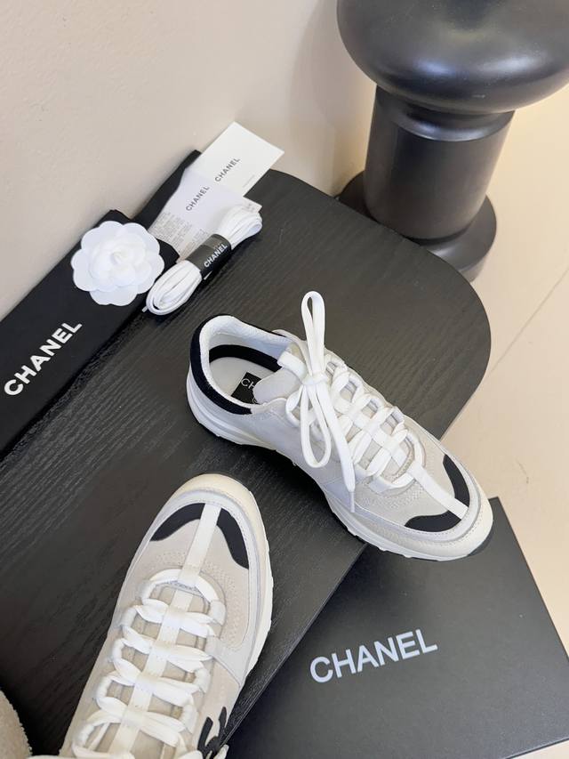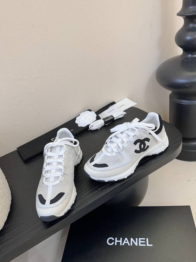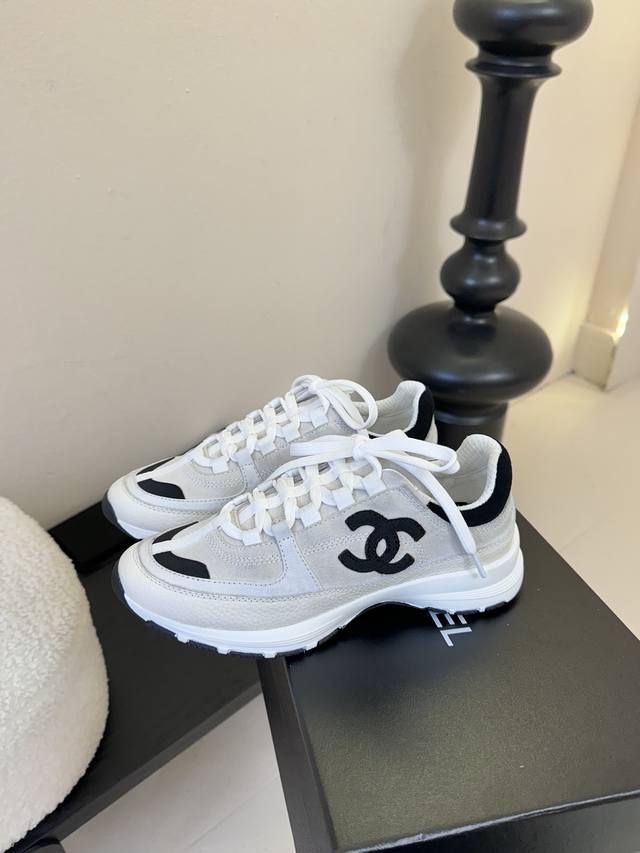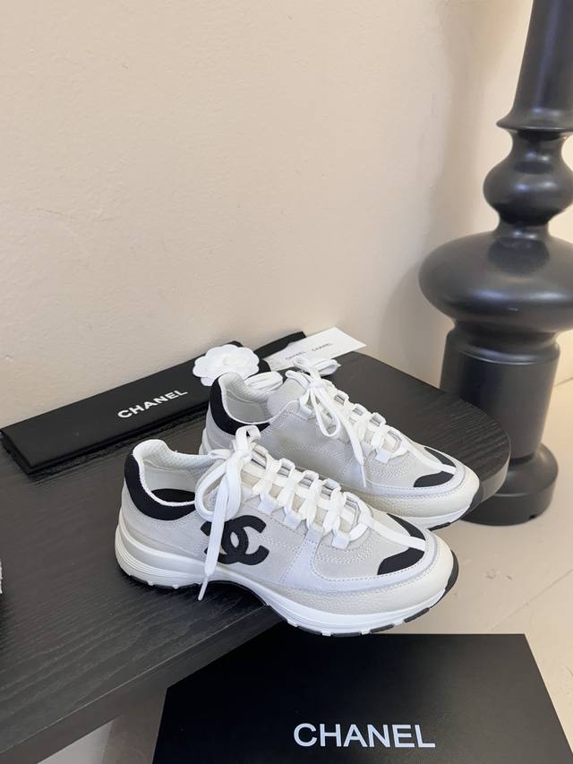 / Chanel 香奈儿 2025新款小香风麂皮圆头熊猫菱格厚底运动鞋时尚增高鞋休闲鞋 面料:进口磨砂牛皮 内里:元版内里 鞋底:原版开模鞋底 全套包装 :35-4
