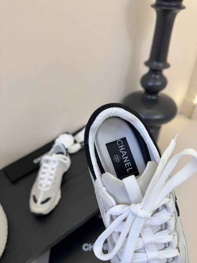Chanel 香奈儿 2025新款小香风麂皮圆头熊猫菱格厚底运动鞋时尚增高鞋休闲鞋 面料:进口磨砂牛皮 内里:元版内里 鞋底:原版开模鞋底 全套包装 :35-4