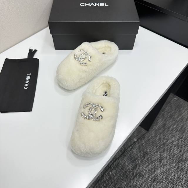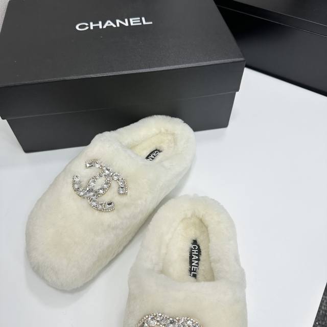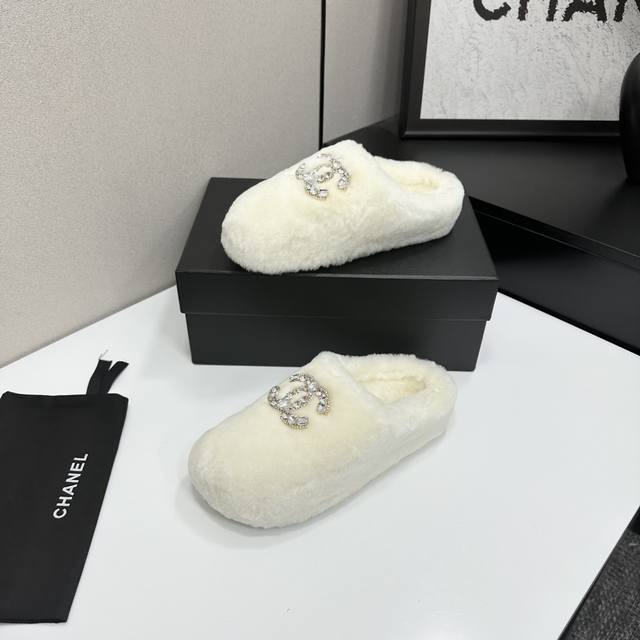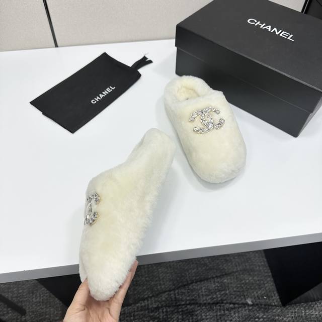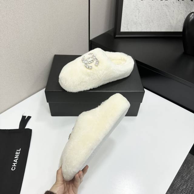 / Chanel 香奈儿25Ss秋冬新款 羊毛拖鞋 鞋面经典配搭字母,整个鞋子毛茸茸的很舒服,上脚感更是要沦陷了超级爱!简直就是冬天里的一把。 鞋面:羊毛 内里垫脚