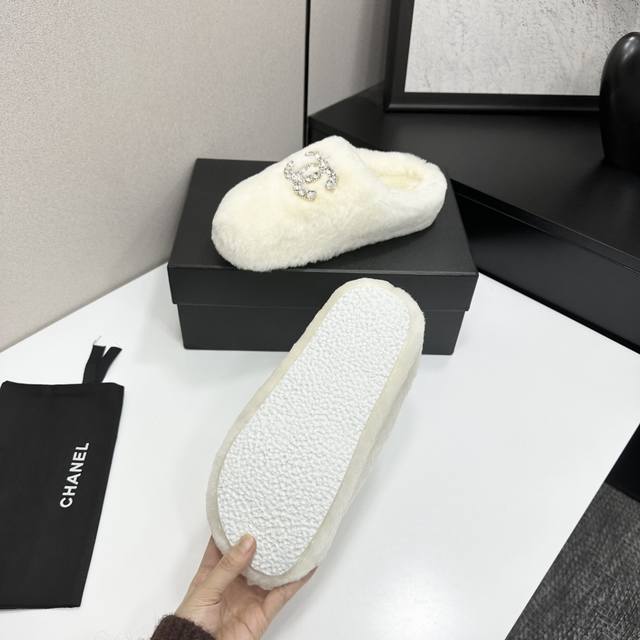 Chanel 香奈儿25Ss秋冬新款 羊毛拖鞋 Ddd 鞋面经典配搭字母,整个鞋子毛茸茸的很舒服,上脚感更是要沦陷了超级爱!简直就是冬天里的一把。 Ddd 鞋面:羊毛 Ddd 内里垫脚:羊毛 Ddd 鞋底:橡胶大底 Ddd 码数:35-39 41 定做不退换 Ddd DDD