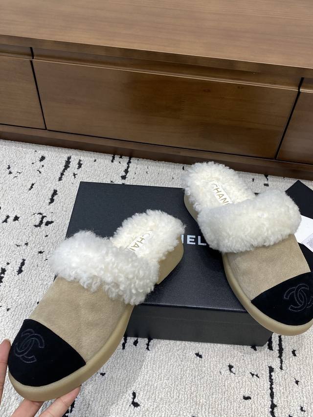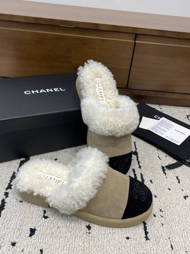 Chanel 2025秋冬款毛拖,半拖, 香奈儿秋冬新品真毛羊毛拖鞋,靴子 小香2025秋冬最美雪地靴没有之一 经典好看又保暖的雪地靴保暖性超强! 这个冬天有它