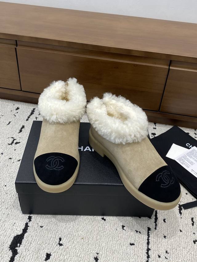 Chanel 2025秋冬款毛毛鞋 香奈儿秋冬新品真毛羊毛拖鞋,靴子 小香2025秋冬最美雪地靴没有之一 经典好看又保暖的雪地靴保暖性超强! 这个冬天有它就足够