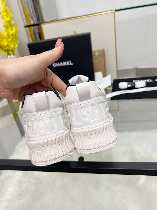 Chanel 25C春夏新款运动鞋 官网同步上 专柜断货王 各大博主社交日推款,这季新款简直闭眼入,上脚狂好看,率性的休闲运动风,飒爽又自然,演绎香奈儿的时髦女性气质,整体定制令当时市面上的所有运动款变得过时,本系列现已登陆发售! 鞋面 采用定制进口荔枝纹小牛皮定制磨砂小牛皮 内里 原版一比一专业定制网布 五金配件 原版全套开模 非市场通用 原版定制开模Tpu组合大底 高度4公分 女码35-40.