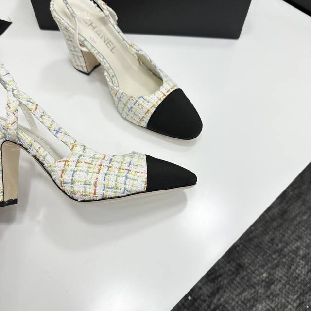 Chan*L经典Slingback小香凉鞋!单鞋! 就像Coco香奈儿女士说的:流行稍纵即逝,但风格永存!这双后空鞋就是香家经典中的经典!双色搭配,简约精致,专